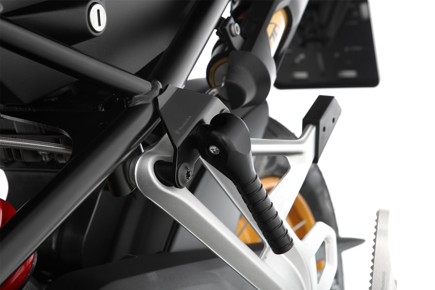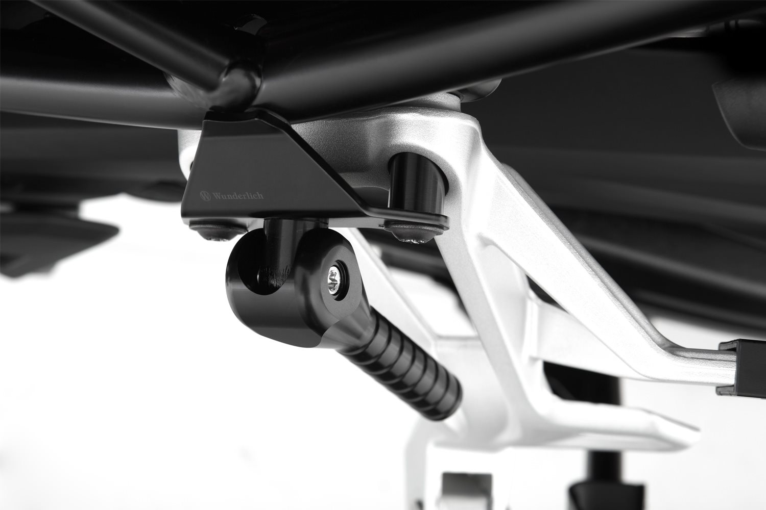Sehr, sehr hilfreiches und ergonomisches Bauteil. Optimiert das Hebelverhältnis - nicht nur bei voll beladener Maschine. Dieser ausklappbare Aufbockgriff wird am Rahmen der linken Soziusraste mit einer soliden passgenauen Konsole montiert. Ausgeklappt lässt sich die Maschine spürbar leichter und sicherer auf den Hauptständer aufstellen. Dies liegt daran, dass der rutschsichere Griff gut in der Hand liegt und man damit deutlich mehr Kraft übertragen kann, als an Rahmenrohren, die schlecht zu greifen sind oder durchs Gepäck gar nicht zugänglich sind. Nach dem Aufbocken verschwindet der Griff unauffällig in seiner Ruheposition. Ein Mechanismus sorgt für die sichere Arretierung des Griffs in der eingeklappten Position. Wir fertigen unseren Aufbockgriff sehr hochwertig aus Aluminium, das Design ist funktional. Fakten Funktion Technische Daten Besonderheiten Wunderlich ProduktkategorieBeschreibung zu Wunderlich Aufbockgriff klappbar- schwarz anzeigen
