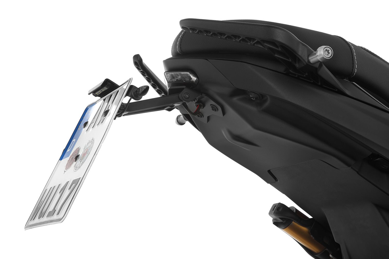 • Ausleger Kennzeichenhalter: Aluminium, präzise gefräst und schwarz pulverbeschichtet