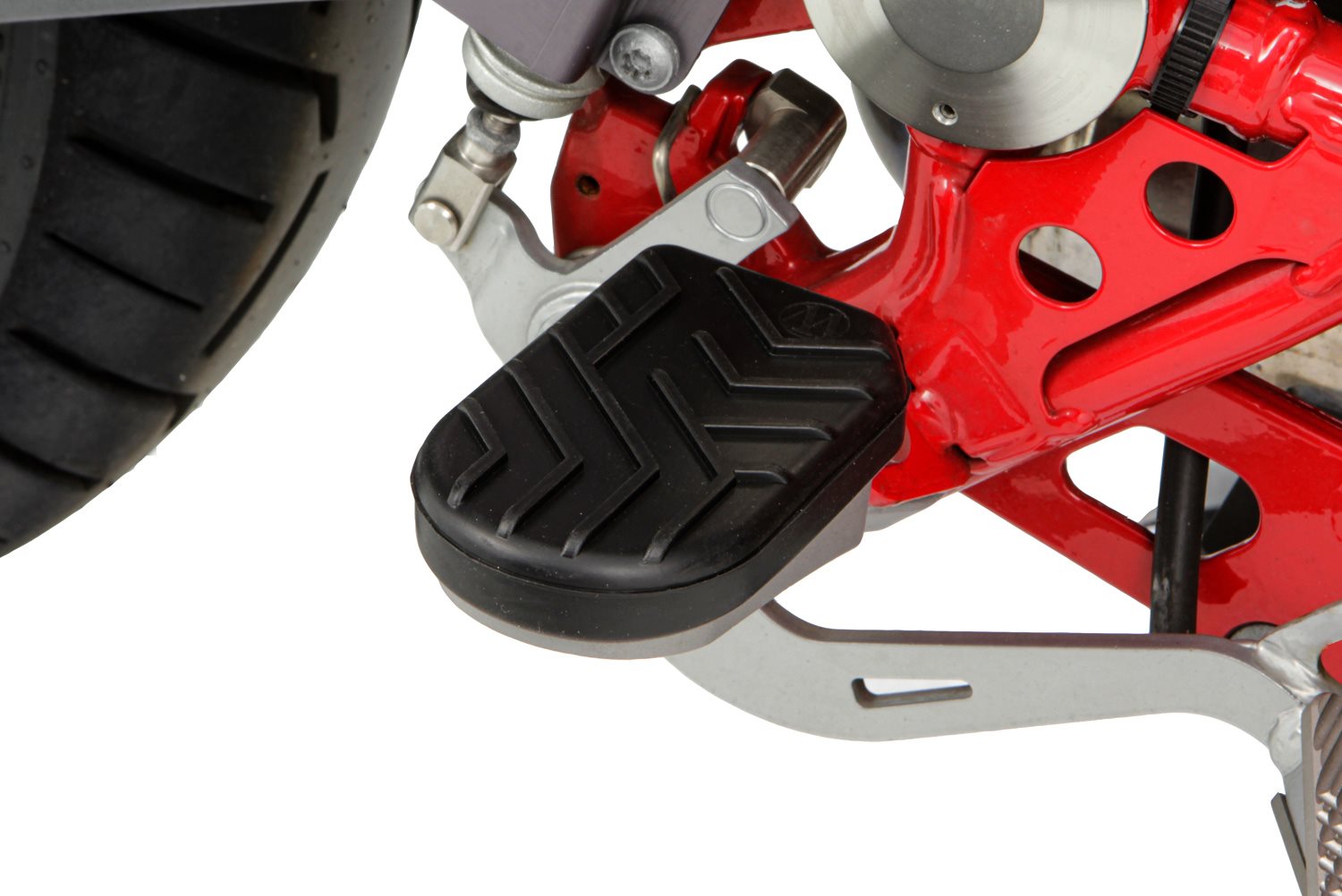 Die original Metall-Fußrasten der R 1200 GS Adventure sind perfekt fürs Gelände ausgelegt: Sie sind robust und stabil und schmutztolerant. Selbst wenn sie mit Staub und Schlamm überzogen sind, bieten sie sicheren Halt. Sie bieten Grip, aber keinen Komfort. Soweit, so gut. Was im Gelände top ist, kann im Alltag oder auf der Reise, wenn man nicht mit Cross-Stiefeln unterwegs ist, ganz schnell unkomfortabel sein. So bleiben unschöne Beschädigungen an weniger robustem Schuhwerk nicht aus, denn die ausgeprägten Spitzen der Metall-Fußrasten hinterlassen ihre Spuren. Und beim Rangieren mit ungeschütztem Schienbein riskiert man die eine oder andere durchaus schmerzhafte Blessur. Wir haben unsere Rastengummis genau vor diesem Hintergrund für den normalen Alltagsgebrauch, für die Reise, für den täglichen Weg ins Büro oder beim Einsatz in der Stadt entwickelt. Ihre profilierte Oberfläche bietet perfekten Halt. Sie werden formschlüssig eingesetzt und ragen über den Rand der Original Rasten und umrahmen ihn, so dass der Schienbeinkontakt garantiert folgenlos bleibt. Der Kontakt mit den Schuhen sowieso. Darüber hinaus sorgen sie für eine angenehme Dämpfung der Motorvibrationen. Den sicheren Halt der Rastenauflage gewährleistet der zweifach von unten verschraubte, präzise geformte Gegenhalter. Und wer das Gelände aufsucht, kann sie für die ganz harten Einsätze einfach und schnell entfernen. Hinweis: Die Rastenauflagen sind nur für die Fahrerfußrasten konzipiert! Die Fakten: Funktion Technische Daten BesonderheitenBeschreibung zu Wunderlich Rastenauflage - schwarz - Satz anzeigen