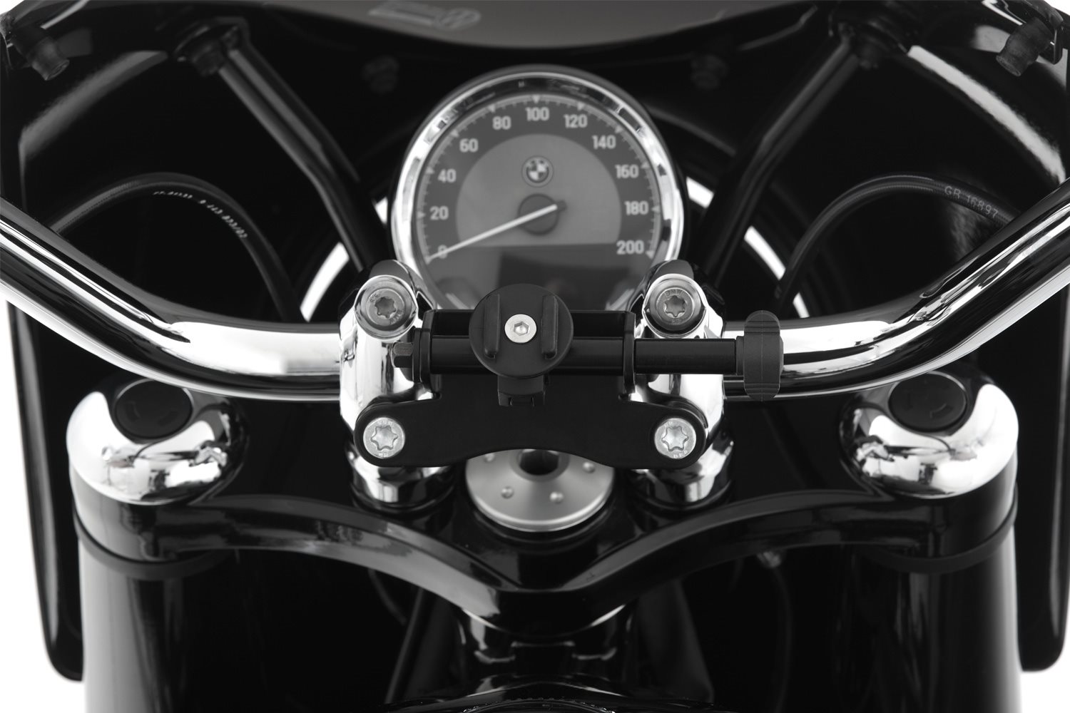 • Universaler Geräteträger, an dem die Peak Design Mirror Mounts (#39001-641 mit Ladefunktion oder #39001-625), das SP-Connect Smartphone System Mirror Bundle (#45151-008 oder #45151-022), aber auch unser Rundrohradapter Multiclamp (#21176-102) bedienergonomisch günstig montiert werden kann