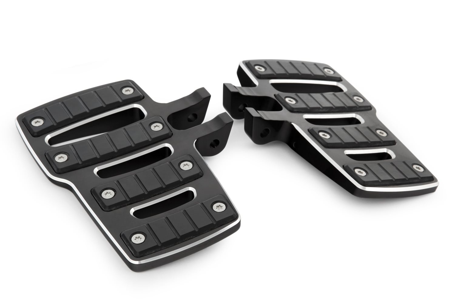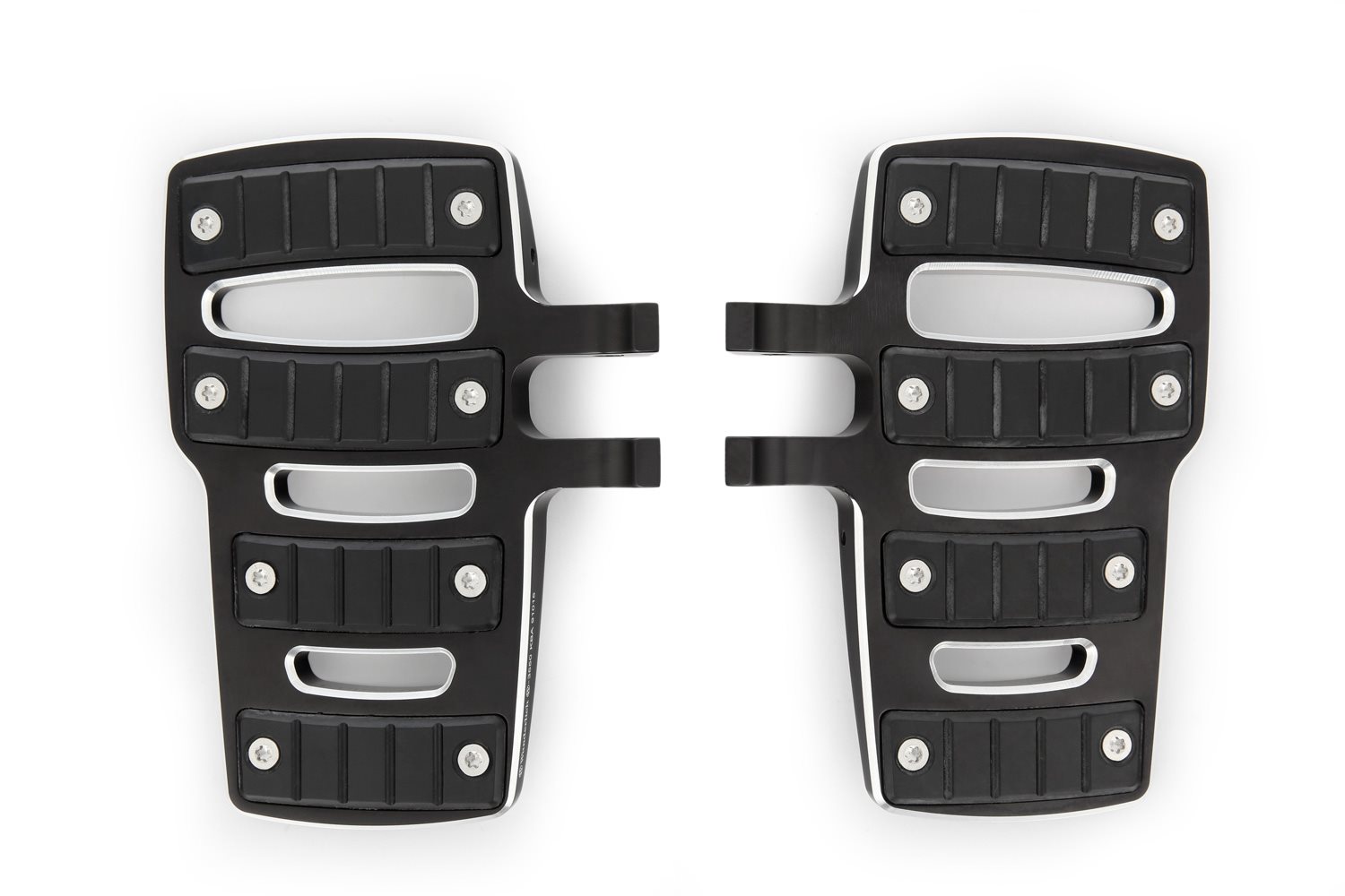 Edle, sorgfältig und mit viel Liebe zum Detail gefertigte Trittbretter. Solide dimensioniert und aus hochfestem Aluminium angefertigt. Die Güte und Qualität des Finishs und das integrierte Design sorgen für eine deutliche Aufwertung der Erscheinung des Big Boxers. Der gleiche Maßstab wurde an die Ergonomie der Trittbretter angelegt, die mit der vergrößerten Trittfläche nicht nur deutlich mehr Komfort bieten, sondern auch zur erhöhten Fahrsicherheit beitragen. Die auf das Design der Trittbretter abgestimmten Gummiauflagen bieten hervorragenden Grip beim Fahren und dämpfen jegliche Vibrationen. Sie sind austauschbar.