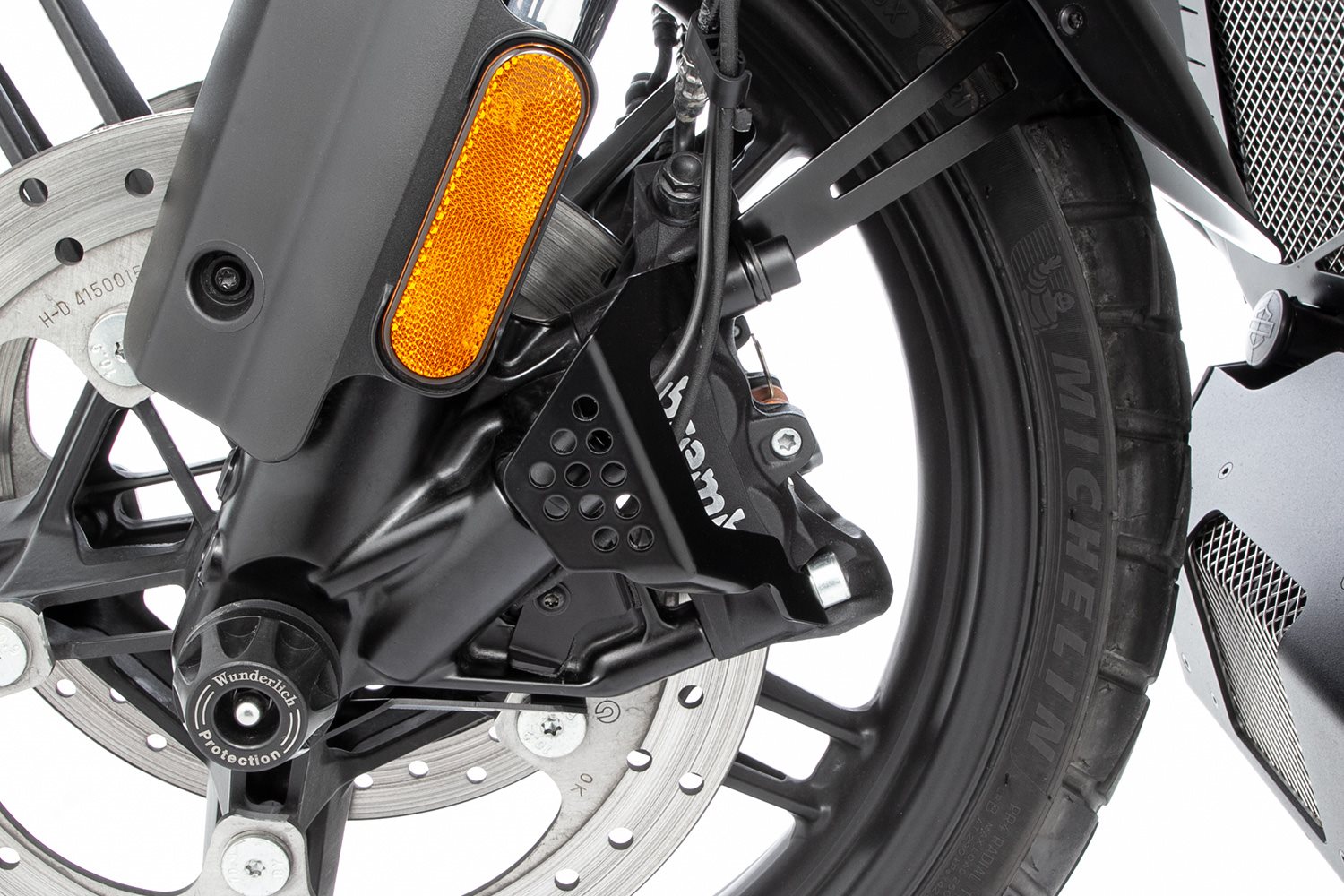 Die Harley-Davidson Pan America 1250 Special ist mit einem elektronisch angesteuerten Regelventil für die Dämpfung der Gabel ausgestattet. Die Elektronische Regeleinheit mit dem zugehörigen Anschlüssen ist sehr exponiert am linken Gabelholm montiert. Mit unserem maßgeschneiderten Cover schützen wir das Regelventil zuverlässig und reduzieren die Gefahr der Beschädigung durch Steine, Geäst oder sonstige Fremdkörper, denn ein Ausfall kann unangenehme Folgen nach sich ziehen. Das Schutzcover weist eine solide Materialstärke von 2,5 mm auf. Zur konstruktiven Bauteilsteifigkeit trägt die dreidimensionale Form und die präzise Kantung des hochwertigen Covers aus Edelstahl bei. Die Lochung unterstreicht den Adventure Look und verringert die Masse des Covers. Es wird passgenau und formschlüssig mit dem gut zugänglichen vorderen linken Bremssattel verschraubt den es zusätzlich schützt - und integriert sich auf diese Weise dezent. Fakten Funktion Technische Daten Ihre Wunderlich VorteileBeschreibung zu Wunderlich Schutzcover für das Dämpfungsregelventil Pan America 1250 S- schwarz anzeigen