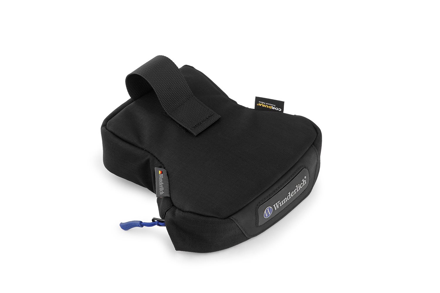 Perfekt maßgeschneidert fügt sich diese hochwertige Gepäckträgertasche griffgünstig gelegen in der Lücke unterhalb des Gepäckträgers ein und nutzt so den freien Raum optimal aus. Die aus nachhaltigem CORDURA TrueLock gefertigte Tasche verfügt über ein Fach, das mit den griffigem Zipper des wasserabweisenden Reißverschlusses auch mit Handschuhen geöffnet und geschlossen werden kann. Sie eignet sich besonders für Kleinigkeiten, die schnell greifbar sein sollen. So finden beispielsweise das Erste-Hilfe-Set, Werkzeug etc. problemlos Platz. Die einfache Befestigung erfolgt durch die Befestigungslasche auf der Oberseite der Tasche. Durch die rutschfeste Unterseite sitzt die Tasche fest am Fahrzeug.