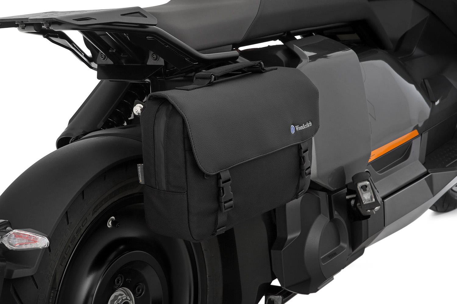 Maßgeschneiderte, perfekt integrierte Businesstasche für den BMW Scooter CE 04. Wir haben unser bewährtes und exklusives Konzept der sicheren Befestigung unserer Taschen mit LOXX-Schnellverschlüssen auf den Scooter übertragen. Die Tasche wird mit einem Handgriff mittels der einfach zu handhabenden LOXX Schnellverschlüsse auf der rechten Seite hinter dem Staufach an dem mitgelieferten Grundhalter sicher befestigt. Sie kann genauso schnell wieder abgenommen werden. Die außergewöhnliche Tasche besteht aus wasserabweisendem, UV-stabilem, Fluorcarbon-imprägniertem Cordura 1000 Gewebe. Dieser robuste Stoff hat sich tausendfach bei unseren hochwertigen Tankrucksäcken bewährt. Ausgerüstet mit Trageriemen und wasserabweisenden Reißverschlüssen. Die Tasche bietet mit einem Hauptfach und einem mit Reißverschluss versehenen kleineren Nebenfach reichlich Platz für allerlei Utensilien. Funktionales, praktisches Format DIN A4, für Notebook oder iPad bestens geeignet. Funktion Technische Daten Ihre Wunderlich VorteileBeschreibung zu Wunderlich Business Tasche CE 04- schwarz anzeigen