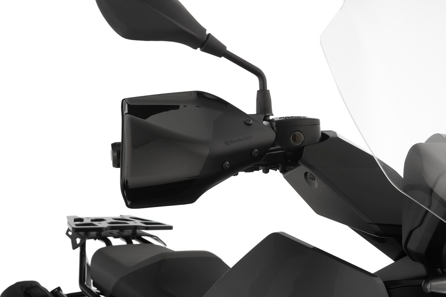 Lange war der Einsatz von Handprotektoren ausschließlich Offroad-Maschinen vorbehalten. Dies ist völlig unverständlich, bieten sie doch viele Vorteile. Kalte, klamme oder nasse Hände sind unangenehm, genau wie Steinschlag, Staub oder Abgase, Straßenschmutz jeder Art oder bei hohen Geschwindigkeiten aufprallende Insekten. Unsere Handprotektoren sorgen wir für Abhilfe. Mehr Schutz geht nicht, aber so viel Schutz sollte es schon sein. Unsere Konstrukteure haben die Handprotektoren zur Wasserableitung mit einem nach außen ragenden Kragen versehen, der Spritzwasser nach außen lenkt und seitlich abfließen lässt. Abgesehen von der Funktionalität sind unsere Handprotektoren dezent und ansprechend und passend zum CE 04 designt. Die Handprotektoren bestehen aus Acryl, sie sind thermisch beständig, kratz- und bruchfest und unempfindlich gegenüber Benzin. Sie lassen sich einfach und schnell montieren. Die Fakten Funktion Technische Daten Die Wunderlich VorteileBeschreibung zu Wunderlich Handprotektoren CE 04- schwarz anzeigen