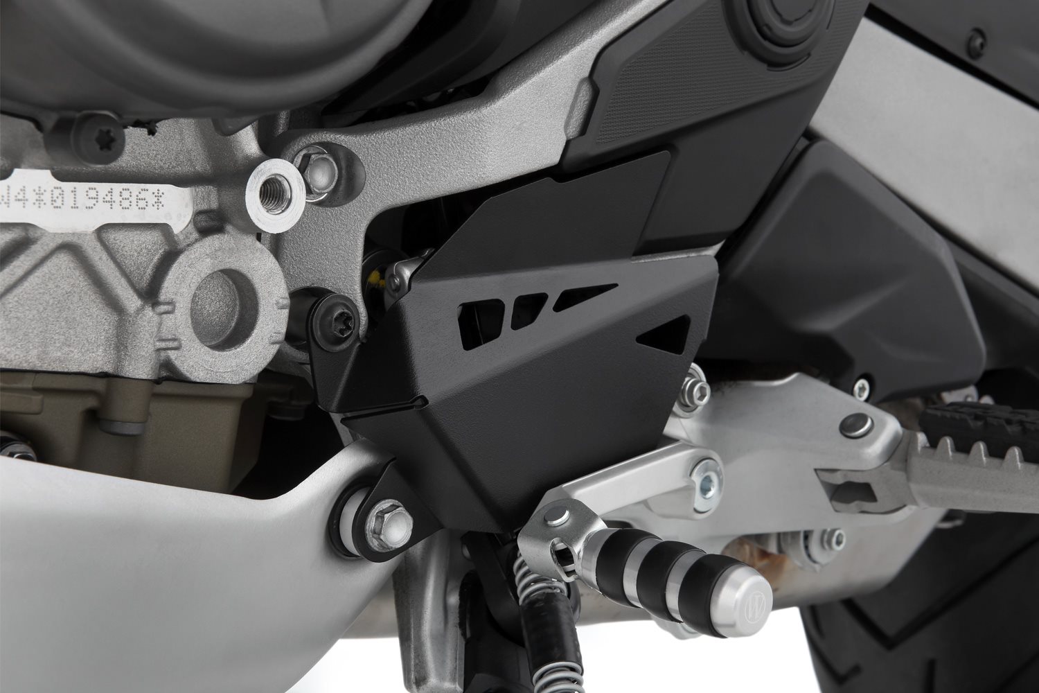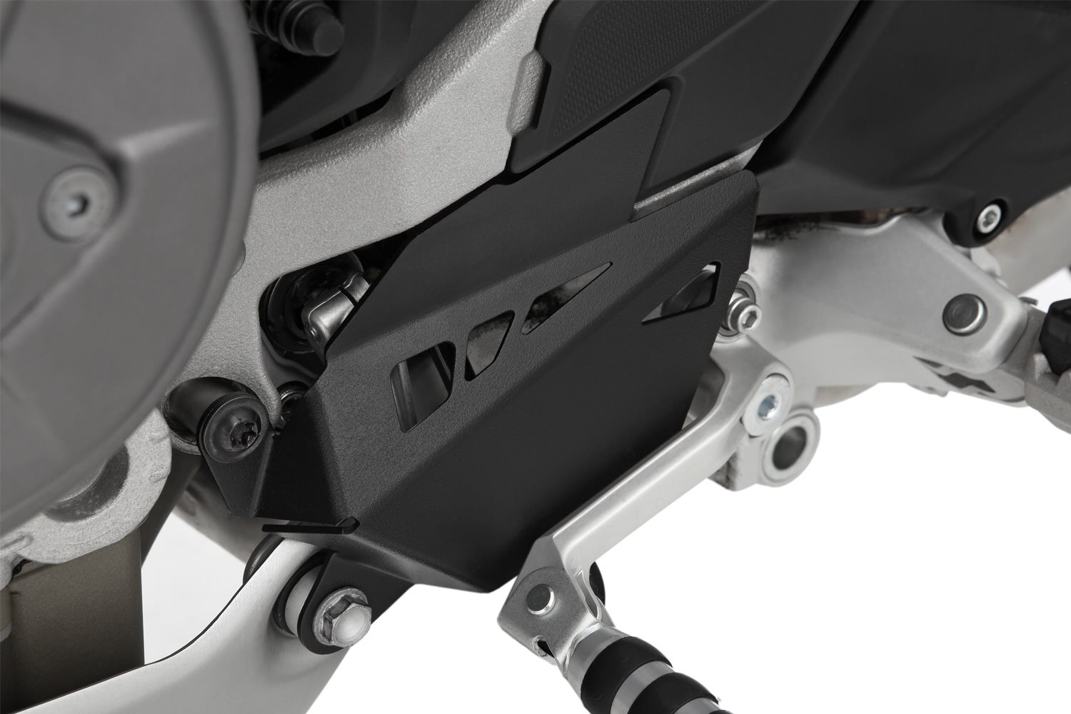 Solide Schutzabdeckung für den Schaltmechanismus, die durch ihr Design sehr sportlich anmutet und sich perfekt ins Adventure-Bike-Design der Multistrada einfügt. Die hohe Schutzwirkung ergibt sich aus der Steifigkeit des gekanteten, teils durchbrochenem, passgenau eingefügten 2 mm-Aluminiumblechs. Damit wird die Gefahr der mechanischen Beschädigung der Schaltmechanik im Alltag, besonders im engagierten Offroadeinsatz zuverlässig reduziert. Gleichzeitig schützt sie vor Schmutz und damit auch vor unnötigem Verschleiß. Die Montage erfolgt unkompliziert an drei vorhandenen, gut zugänglichen Befestigungspunkten. Die Fakten Funktion Technische Daten Ihre Wunderlich VorteileBeschreibung zu Wunderlich Schutzabdeckung Schaltmechanismus- schwarz anzeigen