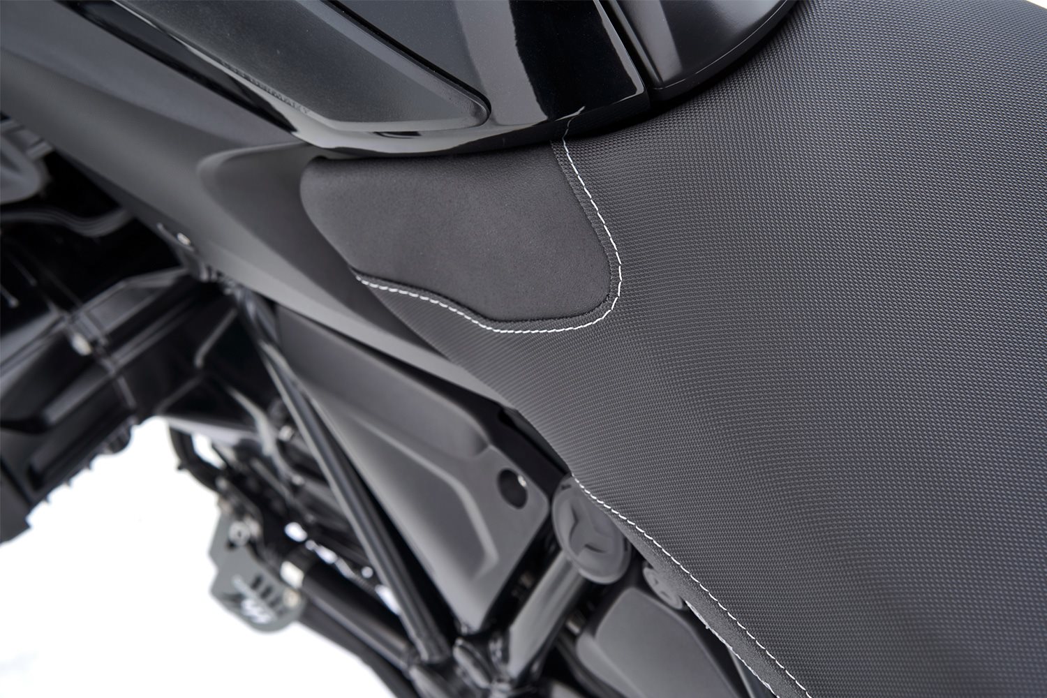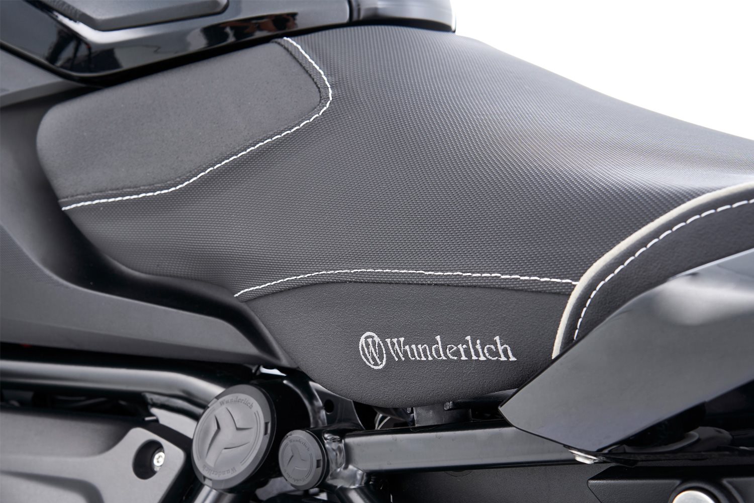 Funktion Technische Daten Besonderheiten Wir fertigen unsere Sitze mit einer charakteristischen, ergonomischen 3-D-Kontur, die den Fahrer mit seinem BMW-Motorrad eins werden lässt. Form und Neigung des aufwändig verarbeiteten Sitzbankkerns unterstützen die ergonomische vorteilhafte, natürliche Haltung des Beckens. So integriert, fährt es sich einfach entspannt und damit aktiv. Und, kein Zweifel, entspanntes Sitzen schafft ein Plus an passiver Sicherheit. Bei unseren ThermoPro Fahrer- und Beifahrersitzbänken liegt die Temperatur der Sitzfläche im Hochsommer in praller Sonne um bis zu 25°C niedriger im Vergleich mit herkömmlichem Bezugsmaterial. Passend dazu haben wir eine Beifahrersitzbank im Programm. AKTIVKOMFORT Sitzbank mit einstellbarer Sitzheizung Smart Plug & Play Smart Plug & Play: Diese Sitzbank mit Komfort-Sitzheizung ersetzt die originale Sitzbank. Voraussetzung ist, dass die Originalsitzbank ebenfalls mit einer Sitzheizung ausgestattet ist und das Motorrad über die entsprechende Stromversorgung verfügt. Die individuelle Einstellung der gewünschten Heizstufe lässt sich über das entsprechende Fahrzeugmenü wie gewohnt vornehmen. Für alle AKTIVKOMFORT-Sitzbänke gilt: Sie bieten perfekten Halt und aktive, sichere Kontrolle bei forcierter Fahrt, ganz besonders auch beim Bremsen: Wer kennt das nicht, wenn die Sozia beim Ankern plötzlich von hinten schiebt und man sich unvermittelt abstützen und gleichzeitig, in einer vielleicht brenzligen Lage, auch noch lenken muss. Mit Wunderlichs eigens entwickelter Stützkontur gehören diese Schreckmomente beim Bremsen der Vergangenheit an. Die innovative, ergonomische 3-D-Kontur sorgt auch dafür, dass Druckstellen an den Innenschenkeln beim Stehen an der Ampel, passé sind.Beschreibung zu Wunderlich Fahrer Sitzbank AKTIVKOMFORT mit Sitzheizung Smart Plug & P - schwarz - Standard anzeigen