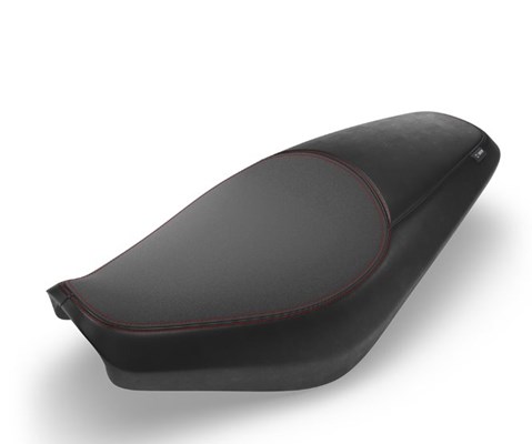 Der Custom-Sitz ist eine sportlichere Variante des regulären Sitzes, bringt aber auch eine Verfeinerung der Qualität mit sich. Er hat ein schmaleres Profil und ein strafferes hinteres Ende, um die Ästhetik zu verbessern, allerdings kombiniert mit einem hochwertigen Finish und 3D-Netztechnologie, um auch einen höheren Komfort zu bieten. Rote Nähte, die an das legendäre Sitzdesign der Royal Enfield Cafe Racer erinnern, vervollständigen den Sitz.