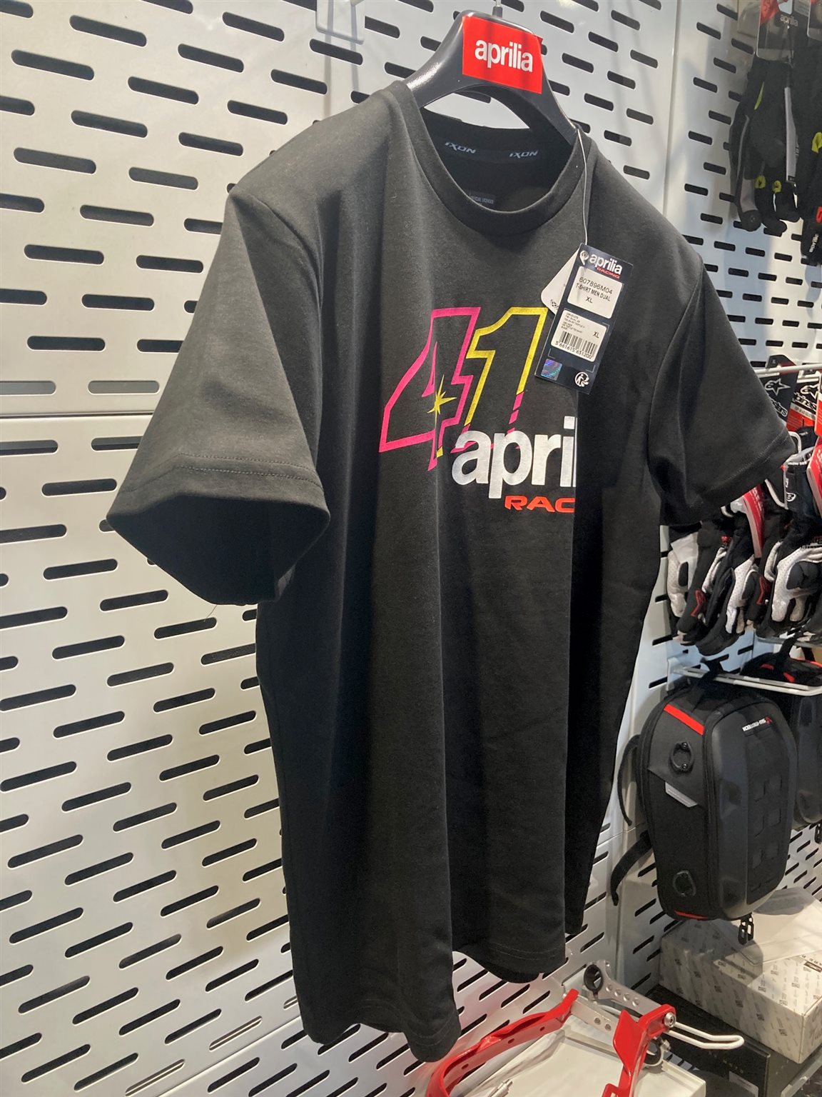 Herren-T-Shirt aus 100% Baumwolle, mit Aufdruck vorn (mit Rennnummer 41 und aprilia racing Schriftzug)