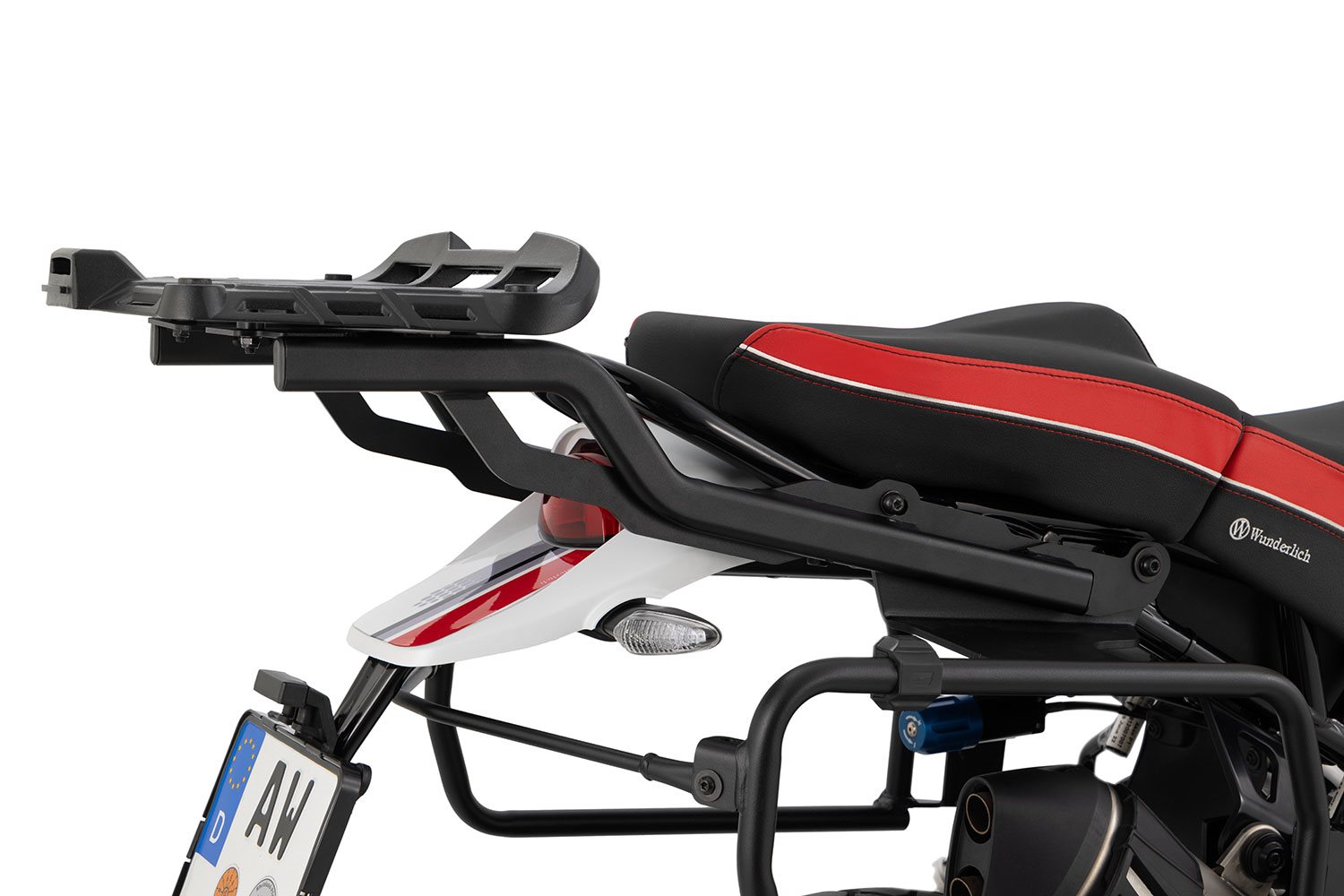 • Die Trägerkonstruktion, bestehend aus dem Stahlträger und der aufwendigen, hochwertigem Aluminiumguss gefertigten Topcaseträgerplatte, bietet zuverlässige mechanische Stabilität auch bei voller Zuladung