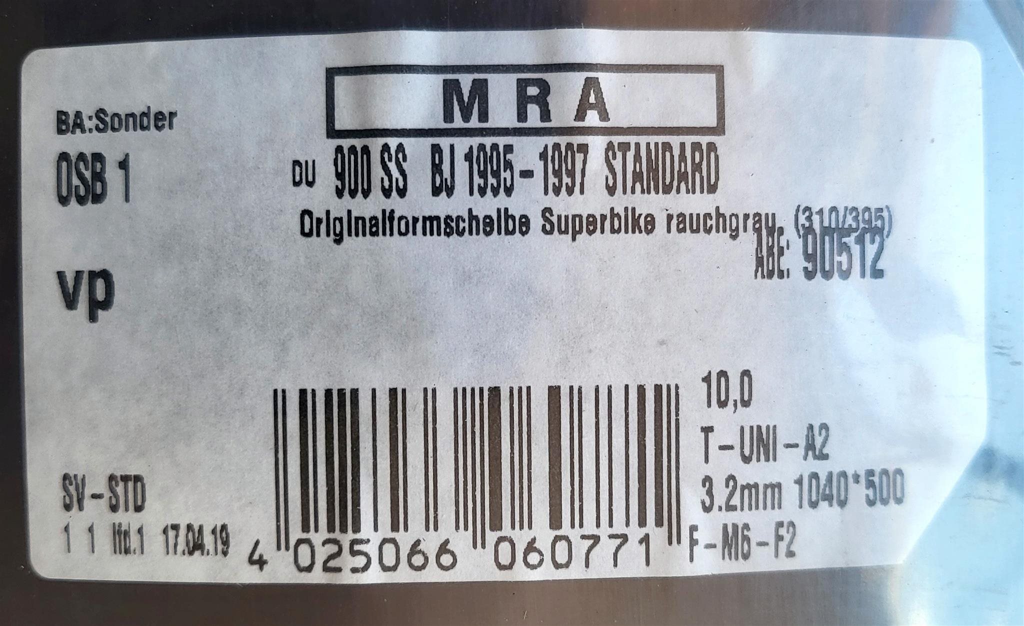Neue Verkleidungsscheibe für Ducati 900 SS (1995 1997) von MRA, rauchgrau, Originalform, ABE 90512, OVP, Versand gegen Aufpreis möglich, 70,- €