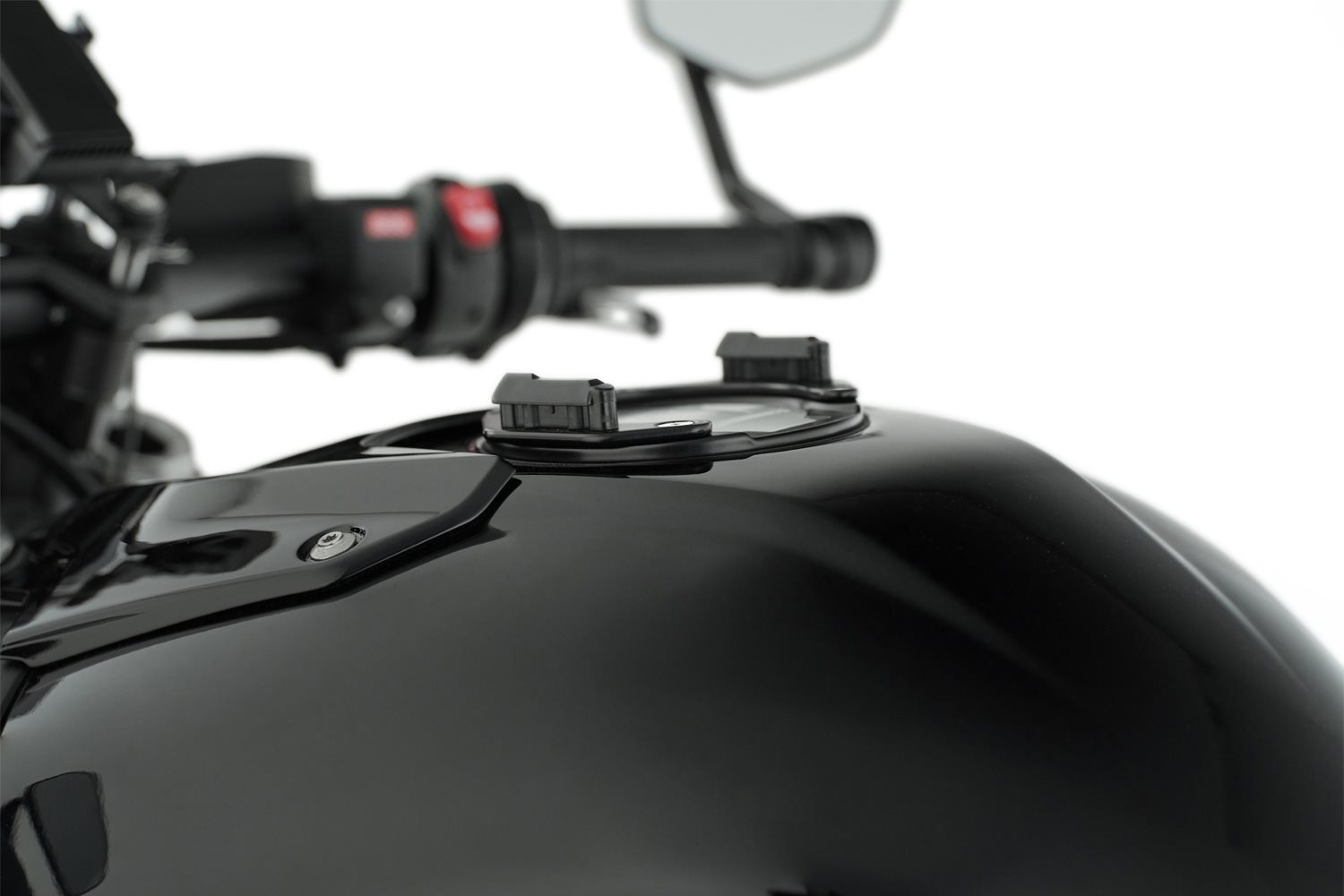 Der modellspezifische, sogenannte Tankring bildet die solide Basis zur sicheren, mechanischen Arretierung der CLICK BAG Tankrucksäcke. Zum Befestigen wird der CLICK BAG von oben in die beiden Führungen des Tankrings eingesetzt, bis das Schloss automatisch verriegelt. Mit einem Riemen am Tankrucksack lässt sich die Arretierung mit einem Zug lösen. So kann der Tankrucksack im Handumdrehen - zum Beispiel zum Tanken abgenommen werden.