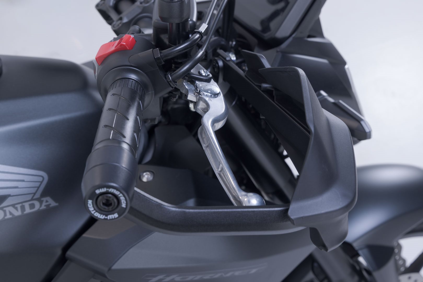 Dank der geschlossenen Form der Adventure Handschalen werden Lenker und Hände auch auf den Seiten abgedeckt. Für noch mehr Schutz kann das separat erhältliche Sturzpad-Set an den Handprotektoren befestigt werden. Für mehr Witterungsschutz sorgt das Erweiterungs-Set, mit dem die Protektionsfläche der Adventure Handschalen vergrößert wird.
