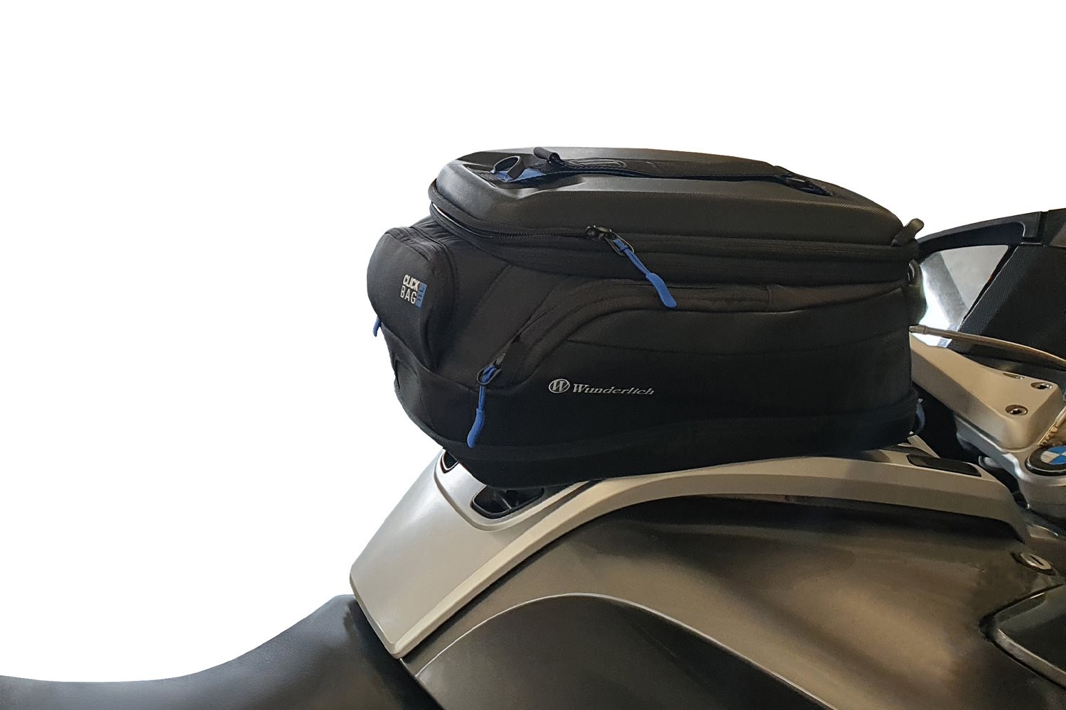 Funktion und Produktmerkmale des Tankrings für die CLICK BAG Tankrucksack-Serie Technische Daten Ihre Wunderlich Vorteile Unsere CLICK BAG Tankrucksäcke bieten Ihnen ein bemerkenswert smartes Handling, denn das Anbringen und Lösen erledigen Sie im Handumdrehen eben mit einem Klick. Der modellspezifische, sogenannte Tankring bildet die solide Basis zur sicheren, mechanischen Arretierung der CLICK BAG Tankrucksäcke. Zum Befestigen wird der CLICK BAG von oben in die beiden Führungen des Tankrings eingesetzt, bis das Schloss automatisch verriegelt. Mit einem Riemen am Tankrucksack lässt sich die Arretierung mit einem Zug lösen. So kann der Tankrucksack im Handumdrehen - zum Beispiel zum Tanken abgenommen werden.Beschreibung zu Wunderlich Tankring für Tankrucksack CLICK BAG R 1200 RT (2010 - 2013)- schwarz anzeigen