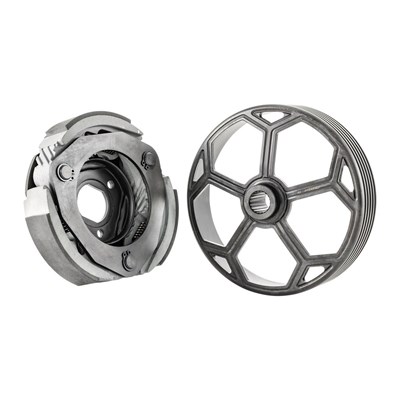 High Performance Sportkupplungskit by KOSO Zusammen mit dem Vario-Antrieb sind Kupplung und Glocke für die Kraftübertragung der Leistung auf das Hinterrad zuständig. Serienmäßige Antriebskomponenten sind meist nur auf günstige Produktion ausgelegt und erreichen bei weitem nicht das Potential wie es Sportkupplungen & Glocken schaffen. Mit ihrem High Performance Sportkupplungskit setzt KOSO ein absolutes Zeichen in Sachen Qualität und Leistungsentfaltung.Was sind die Vorteile des KOSO Kupplungs-Kits?GewichtsoptimierungVergrößerte BelagflächeGesteigerte PerformanceGewichtsoptimierungAufgrund der Bauweise und Materialien der Kupplung & Glocke, ist das komplette System etwa 20% leichter als die originalen Komponenten und sogar im Vergleich mit anderen Aftermarket-Herstellern ist das KOSO-Kit immer noch ca. 10% leichter. Aber was soll das bringen? Ganz einfach, durch die Gewichtsersparnis und die dadurch geringere rotierende Masse ist der Antriebsstrang zunächst etwas agiler beim Lastwechsel. Hinzu kommt, dass durch das geringere Gewicht welches auf der Primärwelle lastet, das Material etwas geschont wird.Vergrößerte BelagflächeDie Belagfläche der Kupplung ist um einiges größer als bei herkömmlichen Kupplungen. Dies hat zur Folge, dass sich die Reibungskraft zwischen Kupplung & Glocke erhöht. Ein einfaches Durchrutschen der Kupplung, gerade bei etwas Mehrleistung, wird verhindert.Gesteigerte PerformanceMit einer Sportkupplung steigert man zwangsläufig auch die Performance des Antriebsstrangs. Neben verbessertem Kraftschluss sorgt auch die Gewichtsersparnis für ein klein wenig Mehr an Performance und die härteren Kupplungsfedern sorgen für eine höhere Einkuppeldrehzahl was eine verbesserte Beschleunigung zur Folge hat. Zudem kommt, dass die KOSO-Antriebskomponenten im Vergleich zum Original deutlich besser gewuchtet sind, was Vibrationen im Antrieb minimiert. Fazit: Der Wechsel auf eine Sportkupplung mit Sportglocke macht immer Sinn.Nicht vergessen der SIP-TIPP:Der KOSO Variator ist optimal auf deren Kupplungssystem abgestimmtWenn der Antriebsstrang schon mal offen ist, unbedingt den Keilriemen prüfen und ggf. ersetzenDas i-Tüpfelchen bietet der SIP Performance Wandler