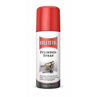 Ballistol Pflegespray, speziell zur Reinigung von Zylindern und Schlössern aller Art. Durch die enthaltenen Keramik-Partikel wird der Mechanismus optimal geschmiert und die Mechanik wieder leichtgängig. Erreicht durch Einsprühen selbst die engsten Passungen, Quietschen und Knarren wird beseitigt. Es verdrängt Feuchtigkeit und wirkt somit vorbeugend gegen Vereisung. Die Funktionalität wird damit erhalten und die Lebensdauer somit verlängert. Schützt vor Rost und löst bereits vorhandenen Rost.Pflegt, Schützt, Verdrängt WasserErhält LeichtgängigkeitZylinderspray ist silikon-, PTFE-, säure- und harzfreiEinfach mitgeliefertes Kapillarröhrchen aufsetzen und einen kurzen Sprühstoß in den Zylinder (beide Seiten) oder Schloss sprühen. Danach den Schlüssel einige Male im Schloss drehen.Typische AnwendungsmöglichkeitenSchließzylinderAuto-, Motorrad und FahrradschlossVorhängeschlösserFenster- und MöbelbeschlägeGeldkassetten und TresoreSignalwort Gefahr Gefahrenhinweise H222 Extrem entzündbares Aerosol.H229 Behälter steht unter Druck: Kann bei Erwärmung bersten. Sicherheitshinweise P102 Darf nicht in die Hände von Kindern gelangen.P101 Ist ärztlicher Rat erforderlich, Verpackung oder Kennzeichnungsetikett bereithalten.P211 Nicht gegen offene Flamme oder andere Zündquelle sprühen.P251 Nicht durchstechen oder verbrennen, auch nicht nach Gebrauch.P210 Von Hitze, heißen Oberflächen, Funken, offenen Flammen und anderen Zündquellen fernhalten. Nicht rauchen.P410 + P412 Vor Sonnenbestrahlung schützen. Nicht Temperaturen über 50 °C/122 °F aussetzen.P501 Inhalt Problemsammelstelle zuführen.