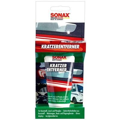 Der SONAX KratzerEntferner Kunststoff NanoPro ist eine Hochleistungspolitur auf Nanotechnologie-Basis zur Entfernung von Kratzern und Blindstellen aus Kunststoff und Acrylglas. Die speziellen Polierkörper des KratzerEntferners zerfallen während des Poliervorganges in extrem feine Partikel und ergeben so eine hochglänzende glatte Oberfläche. Der SONAXKratzerEntferner ist silikonfrei - auch für die Poliermaschine geeignet. SIP-Tipp: perfekt um verwitterte Tachogläser wieder durchsichtig zu machen. SicherheitshinweiseP102 Darf nicht in die Hände von Kindern gelangen.