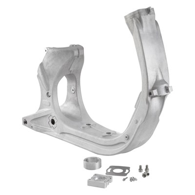 High-Tech Rahmen für die Rennstrecke. Ein Aluminiumgerüst für die Vespa Smallframe Modelle. Der Rahmen der klassischen Vespa Modelle war ein großer Wurf. Eine technisch sehr fortschrittliche Lösung, die wenig Gewicht mit hoher Verwindungssteifigkeit verband. Das selbsttragende Stahlblech als Rückgrat und formgebendes Bauteil ist einer der Gründe für den großen Erfolg der klassischen Vespa. Doch wie so häufig ist das Bessere des Guten Feind. Aluminiumguss besonders verwindungssteif flexibel mit verschiedenen Bauteilen kombinierbar In den 40er, 50er und 60er Jahren wäre wohl auch kaum ein Piaggio Ingenieur auf die Idee gekommen, dass im nächsten Jahrtausend Vespa Tuner modernste 2-Takt Motorentechnik mit bis zu 50-60PS in die ein halbes Jahrhundert alten Sammlerstücke verbauen. Kombiniert mit High End Fahrwerken und Radial Bremstechnik. Im Renneinsatz sogar durch professionelle Slick Bereifung mit der Straße verbunden. So können fahrdynamische Kräfte entstehen, an die bei der Konstruktion der Rahmen nicht zu denken war. Warum einen neuen Rahmen? Einen neuen Rahmen zu konstruieren, der höheren Kräften gewachsen ist, ist sehr aufwendig. Es gibt trotzdem gute Gründe sich dem Thema anzunehmen. Zwischen Vorder- und Hinterrad, zwischen Fahrer und Fahrwerk, überträgt der Rahmen alle Kräfte. Das bedeutet, dass ein steifer Rahmen sämtliche Änderungen von Richtung oder Geschwindigkeit exakter umsetzt. Gerade bei hohen Geschwindigkeiten kann das einen hohen Zuwachs an Fahrstabilität bedeuten. Der Indy Rahmen von CRIMAZ für die Vespa ET3 Christian Mazelli von der Firma CRIMAZ hat die Herausforderung nicht gescheut und einen neuen Rahmen auf den Weg gebracht. Er hat dabei nicht nur die originale Konstruktion verstärkt, er ist gleich ganz neue, eigene Wege gegangen. Anstatt aus Stahlblech, besteht sein Rahmen aus Aluminium Guss. Ein Verfahren, dass es erlaubt besonders verwindungssteife Bauteile herzustellen. Der CRIMAZ Rahmen besteht nur aus dem Mitteltunnel, ohne Beinschild, Seitenhauben und Heck. An besonders belasteten Stellen wurden die Dimensionen des Rahmens erweitert. An anderen Stellen wurden Bauteile besser zugänglich gemacht. Der CRIMAZ Indy Rahmen bietet zusätzlich eine Reihe von Möglichkeiten um Bauteile, wie z.B. einen liegenden Stoßdämpfer, zu verschrauben. Das separate Heck Das Heck des Rahmens kann separat angeschraubt werden. Es ist nicht im Lieferumfang enthalten und muss gesondert geordert werden. Es ist als Gitter Rohr Konstruktion ausgeführt und hat verschiedene Anschraubpunkte für das hintere Federbein. Mit dem montierten Heck wiegt der Rahmen 11,7kG. Durchdacht und flexibel Die Sitze für die Lenkkopflager werden einzeln verschraubt. Das ermöglicht die Verwendung von hochwertigen Kegelrollenlagern (32907 und 32909), die für eine besonders stabile Führung der Lenkung sorgen. Die Verschraubung der Motorschwinge setzt von außen an und ist, wie auch die Schwingenlager, im Lieferumfang enthalten. In Position gehalten und geführt wird die Schwinge über Adapter Stücke. Innerhalb dieser Adapter lässt sich der Motor seitlich versetzen, z.B. für die Verwendung eines Breitreifens. Werden die Adapter ganz weggelassen, können Motoren der Vespa Largeframe Modelle verbaut werden. Grundsätzlich entspricht die Geometrie des CRIMAZ Indy Rahmens der der Vespa Smallframe Modelle. Soll der Roller auch äußerlich z.B. der Vespa ET3 ähneln, empfiehlt sich die Kombination mit GFK Heck und Beinschild von CRIMAZ oder PLC. Fazit: ein sehr aufwendiges Stück Vespa Tuning, der letzte Baustein zur Übervespa für die Rennstrecke. Nur etwas für Profis, keine "Plug and Play" Montage.Technische Einzelheiten: Geometrie der Vespa Smallframe Modelle Heck einzeln Ab-/Anschraubbar (einzeln zu bestellen) Smallframe und Largeframe Motoren montierbar Von außen verschraubte Motorschwinge Kegelrollenlagerung der Lenksäule Rahmen: Aluminiumguss Rahmenheck: Gitterrohr Sitze Lenkkopflager verschraubt Gewicht: 11,7 KG Das beste Setup unser SIP-TIPP: Um die elegante, klassische Form der Vespa zu erhalten, eigenen sich perfekt GFK Teile von CRIMAZ oder PLC für Beinschild, Heck oder Kotflügel. In ein High-Tech Rahmen passt am besten ein High-Tech Motor wie die von BFA oder Quattrini. Für ein perfektes Fahrwerk ist die Gabel von Polini die ideale Ergänzung (Art.-Nr. P0502655).