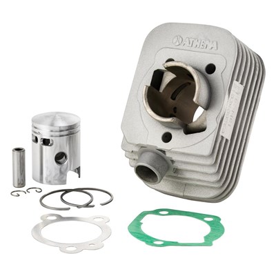Rennzylinder aus dem Hause ATHENA mit dem derzeit besten Preis-Leistungsverhältnis Der ATHENA Zylinder wird aus Aluminium gefertigt, die Laufbahn nicasilbeschichtet. Durch die Verwendung von Aluminium ist der Zylinder deutlich leichter als der originale Graugusszylinder und zeichnet sich vor allem durch seine guten thermischen Eigenschaften aus. Das Zylinderlayout sowie die verwendeten Materialien versprechen eine möglichst lange Lebensdauer und minimiertes Risiko von Kolbenklemmern bei deutlicher Leistungssteigerung. Bei den frühen Motorgehäusen muss dieses ggf. an der Zylinderaufnahme angepasst werden. Fazit: Im 50ccm Sortiment der einzig erhältliche Aluzylinder. Deutlich mehr Fahrspaß durch Leistungssteigerung zum fairen Preis.Technische Details im ÜberblickAluminiumzylinder38,4mm Bohrung2 KolbenringeNicasilbeschichtete LaufbahnInkl. DichtungenDas beste Setup unser SIP-TIPP:Neue Zündkerze ist Pflicht (z. B. NGKB5HS)Passenden Zylinderkopf nicht vergessen (z. B. POLINI P2110026)Mindestens den Vergaser DELLORTO SHA 12.12, für mehr Leistung gleich den 13.13er verwenden