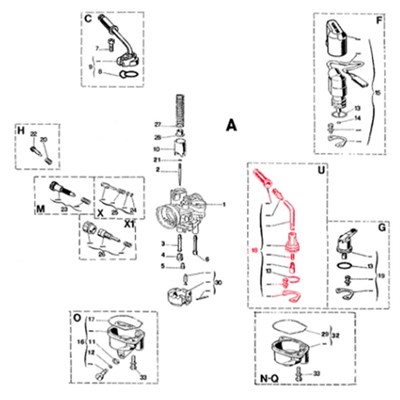 Umrüstchoke Dell ´Orto um PHVA Vergaser von E-Choke auf Zieh-Choke umzubauen. Wer gerade in der kalten Jahreszeit Probleme mit seiner Batterie hat wird immer Schwierigkeiten haben das der E-Choke nicht entsprechend funktioniert und deswegen der Roller nicht anspringt. Gerne hängt auch mal die Mechanik des E-Choke , was zu einem dauerhaft gezogenen Choke führt. Abhilfe schaftt das Umrüstkit von Dell Orto. Einfach gegen den E Choke tauschen, Seilzug verlegen und manuell den Choke bei Bedarf betätigen. Funktioniert immer .