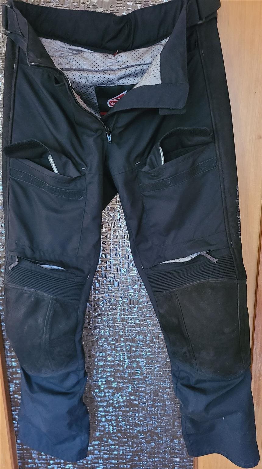 Die Hose ist mit abnehmbaren Hiprotec CE-Protektoren an den Knien ausgestattet und mit Hein Gericke Snap System-Verschlüssen am Futter befestigt. Hüftprotektoren können in die im Futter befindlichen Taschen untergebracht werden.