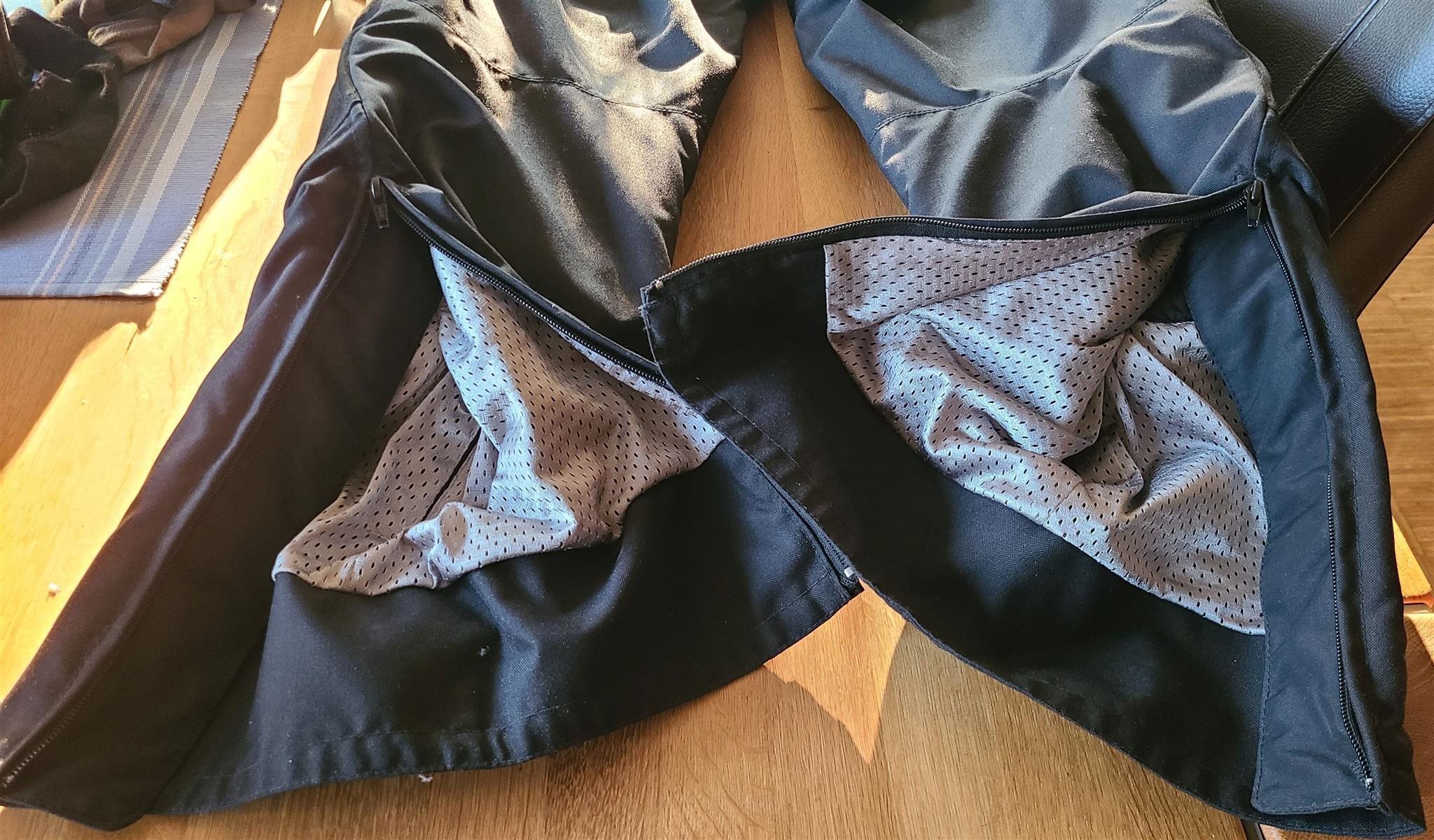 Zwischen den großen Taschen und den Knieprotektoren befindet sich an jedem Bein eine Belüftungsöffnung mit Reißverschluss.