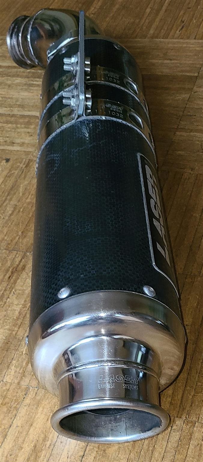 Zu verkaufen ist ein gebrauchter Endtopf von Laser. Der Endtopf war 3 Jahre an meiner Honda VFR 750 F - RC 36 - Bj.: 94 verbaut. Er hat einen kernigen Sound und soll auch ein paar Prozent mehr Leistung bringen und hat keine ABE. Alle eingestanzten Nummern sind auf den Fotos zu erkennen.