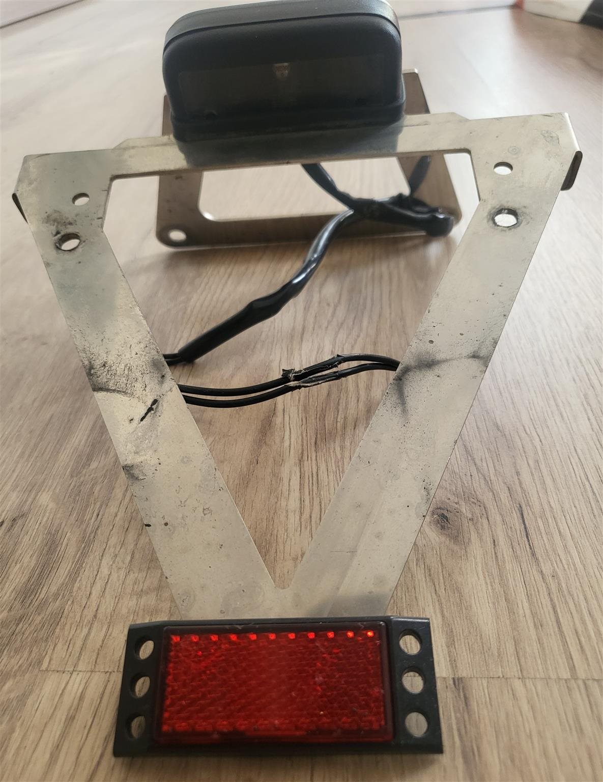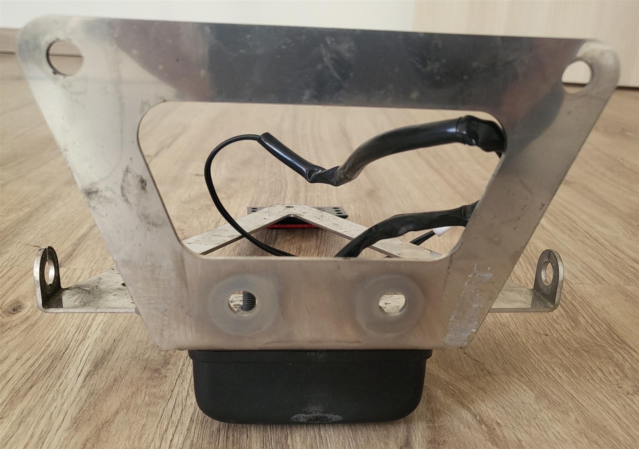 Kennzeichenhalter aus Edelstahl mit Kennzeichenbeleuchtung und Rückstrahler für Suzuki GSX-R 1000 (03 04), Stecker für Kennzeichenbeleuchtung passend für Suzuki GSX-R 1000, Versand gegen Aufpreis möglich, 55. €