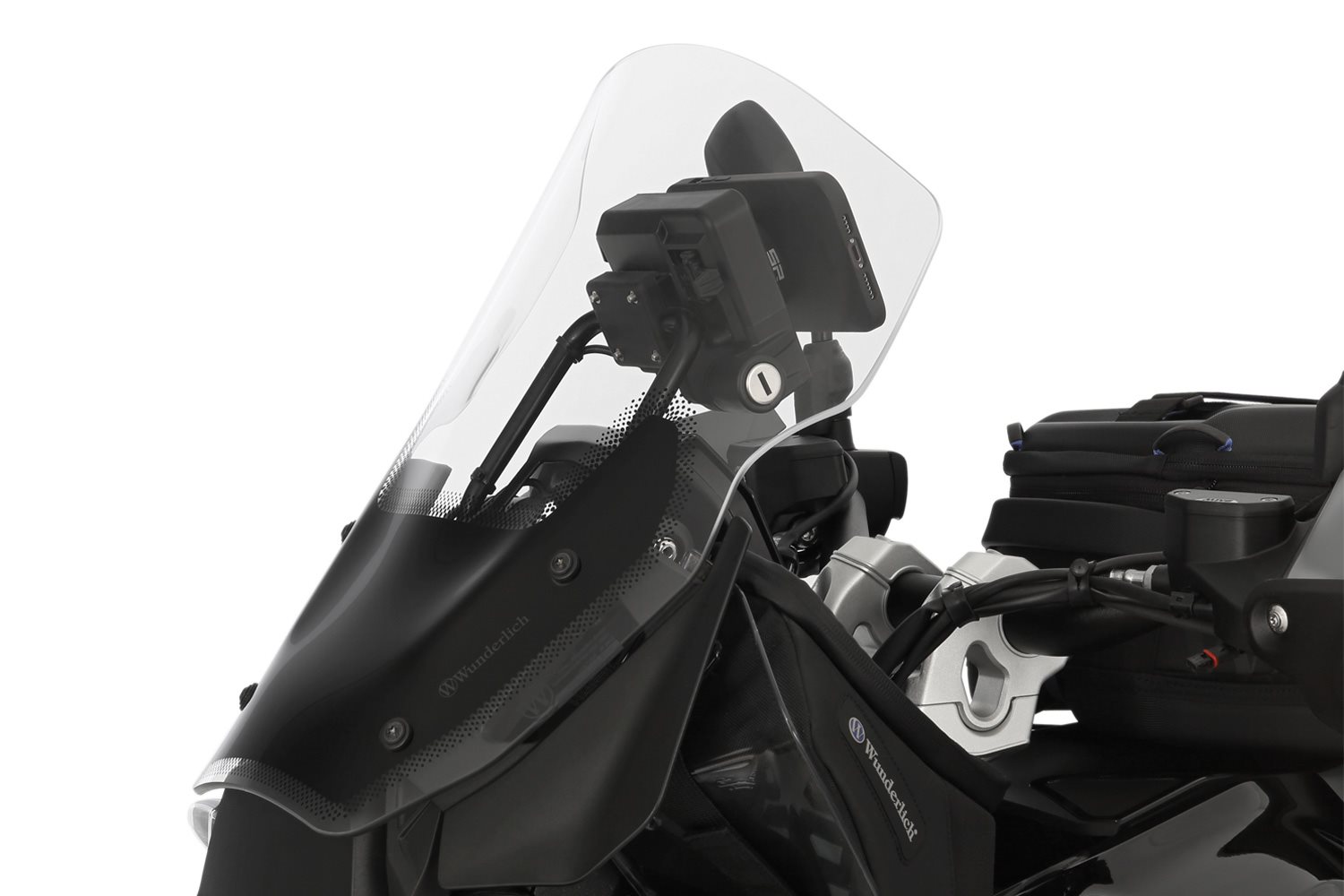 - Universaler Geräteträger, an dem die Peak Design Mirror Mounts (#39001-641 mit Ladefunktion oder #39001-625), das SP-Connect Smartphone System Mirror Bundle (#45151-008 oder #45151-022), aber auch unser Rundrohradapter Multiclamp (#21176-102) sicht- und bedienergonomisch günstig oberhalb des TFT-Kombiinstruments montiert werden kann
