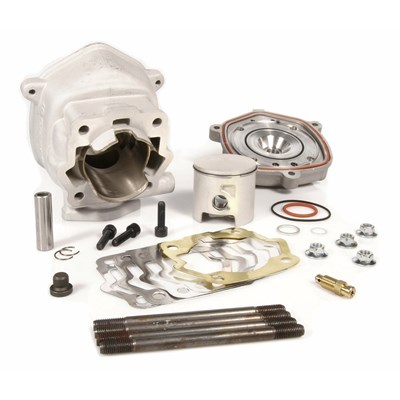 MHR ZYLINDERKITS mit Modularkopf KOPF Ein Rennmotor ist extrem hohen Belastungen, bedingt durch hohe Drehzahlen und Temperaturen, ausgesetzt. Der zweigeteilte Zylinderkopf für wassergekühlte Motoren wurde genau für diese Belastungen entwickelt. Er besteht aus einer mit Silicium beschichteten Kalotte, welche direkt auf den Zylinder montiert wird. Die Konstruktionsbauweise garantiert eine analoge Ausdehnung zum Zylinder. Umgeben wird diese Kalotte von einem wassergekühlten Zylinderkopf mit großen Volumen. Über Jahre hinweg wurden Daten und Werte über das optimale Brennverhalten eines Zylinderkopfes in der Scooter Speed Trophy gesammelt. Das Ergebnis erhält man nun mit dem Modular Zylinderkopf.