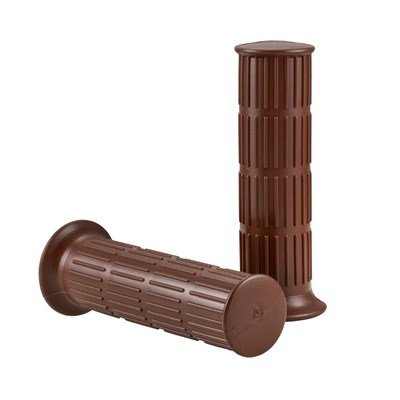 Hochwertige und passgenaue Replica der Original Griffe. Entsprechen sowohl in Form wie auch Farbe dem Original. Ähnlich der Embleme für die Kaskade, sind die Griffe der älteren Modelle mit einem viereckigen Piaggio Logo versehen. Lieferbar in grau, hellgrau, beige/grau (Vintage Look) und schwarz. Die jüngeren Modelle tragen das typische Hexagon bzw. Vespa Logo. Zusätzlich bieten wir Euch auch Griffe in absoluter Premium Qualität an. Diese sind in hochwertigster und lichtechter Gummiqualität produziert, die nicht in Kürze aushärtet oder einen Blaustich aufweist. Mit ihrem "Antik" Design im antiken Feinkaro (mit altem Logo) gleichen sie den originalen Griffen in Qualität und Optik bis ins letzte Detail. Wichtig: Achtet beim Kauf unbedingt auf die korrekte Größe der Griffe. Wir geben hierfür die exakten Bemaßungen (Durchmessers von Gas-und Schaltrohr, als auch die Länge der Griffe an. Prinzipiell lassen sich alle Griffe mit gleicher Bemaßung untereinander austauschen. Für die jüngeren Largeframe Modelle (70er Jahre & PX Modelle) sind Antike Griffe mit Feinkaro und altem PIAGGIO Logo leider etwas zu kurz, so dass ein minimaler Spalt zwischen Griff und Lenker entsteht. Dieser kann jedoch einfach durch das Kürzen des Gas/Schaltrohrs beseitigt werden. SIP-TIPP: Falls Ihr eure alten Griffe nicht wiederverwenden wollt, könnt Ihr sie am einfachsten entfernen, indem ihr sie mit einem Cutter vorsichtig der Länge nach aufschneidet. Die Montage der neuen Griffe funktioniert am besten, wenn Ihr diese ca. 10 Minuten in heißes Wasser legt. (das macht den Gummi flexibel). Dann den Griff schnell über Gas/Schaltrohr schieben (Handschuhe verwenden, heiss!) und fertig!