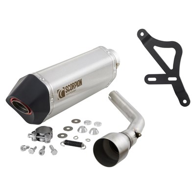 Mit den RED POWER Auspuffanlagen ist der Name Programm! Die moderne Form der SCORPION Red Power Auspuffanlagen ist zwar keine Neuerung auf dem Markt, allerdings bekommt man hier einen hochwertigen Rennauspuff aus Edelstahl. Was sind die Vorteile der Scorpion Red Power Rennauspuffanlage?Hochwertige Verarbeitung Reduziertes GewichtErhältlich in Edelstahl gebürstet oder schwarz keramikbeschichtetDer hexagonale Endschalldämpfer ist in Edelstahl gebürstet oder mit schwarzer Keramikbeschichtung verfügbar. Beide Varianten werden mit schwarzer Endkappe, durch den roten Zierring um den DB-Killer bekommt der Auspuff einen zusätzlichen sportlichen Hauch und ist charakteristisch für den Namen RED POWER! Ihren Namen verdient sich die Anlage zurecht, denn neben der deutlichen Gewichtsersparnis von angeblich 3,4 Kg. gegenüber dem Originalauspuff wird laut Herstellerangaben auch eine minimale Leistungssteigerung mit eingebautem DB-Killer möglich. Das Edelstahlverbindungsrohr wird mittels Federn mit dem Dämpfer verbunden. So werden die Vibrationen einfach weggesteckt, ein Reißen des Dämpfers oder des Krümmers wird nahezu unmöglich. Im Lieferumfang sind neben dem Endschalldämpfer und Verbindungsrohr auch sämtliche benötigten Montagematerialien enthalten. Fazit: Schöner hochwertiger Rennauspuff, leider ohne Zulassung.Das beste Setup unser SIP-TIPP:Für eine bessere Leistungsentfaltung empfehlen wir den Einsatz von sportlichen Komponenten im Antriebsstrang (z. B. MALOSSI Multivar Variator + MALOSSI Delta Clutch Kupplung + POLINI Speed Bell Evo Kupplungsglocke)Wer mehr will, kommt um das MALOSSI Forcemaster 3 Einspritzmodul (Art.-Nr. M5518480) nicht rum