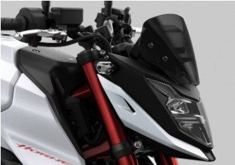 Das über dem Scheinwerfer und vor dem Tachometer positionierte Windschild aus 4 mm starkem Polycarbonate ist dunkel getönt und schützt bei hoher Geschwindigkeit den Fahrer vor starken Verwirbelungen.