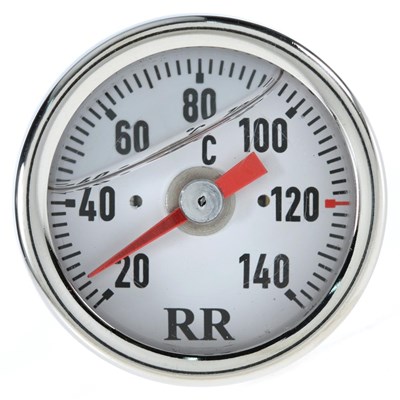 Mit diesem RR-Oltemperatur-Direktanzeiger habt Ihr ein qualitativ hochwertiges Anzeigeinstrument aus deutscher Produktion. Einbau:Tauscht den Anzeiger einfach gegen die Originaleinfüllschraube aus. In warmem Zustand lässt sich der Anzeiger in die gewünschte Stellung drehen. Thermometer ist gleichzeitig Messstab mit Markierung. Reinigung und Pflege:Das Thermometer lässt sich, wie dein Scooter auch, mit handelsüblichen Reinigern problemlos säubern. Bei Verwendung von Dampfstrahler oder stärkerem Wasserstrahl, Anzeiger abdecken. Allgemeines:Der Anzeiger (V4A-Metall) ist zur optimalen Dämpfung mit Öl gefüllt und im Adapter gummigelagert. Scheibe ist aus Glas. Die im Dämpfungsöl befindliche Luftblase, dient dem Druckausgleich bei thermischen Schwankungen. Adapter:Aluminium, veredelt, Originaldichtung.