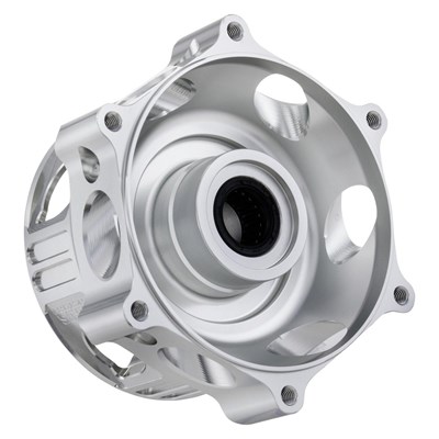 Fertigung. Die CNC-gefräste Radnabe von MARUS wird aus einer hochfesten Aluminiumlegierung gefertigt. Durch die präzise Bearbeitung, feine Wuchtung und die leicht laufenden Lager ergibt sich ein deutlich ruhigerer Rundlauf im Vergleich zum Originalbauteil. Zudem reduziert die Gewichtsersparnis gegenüber der PIAGGIO-Radnabe die ungefederten Massen und verbessert spürbar das Fahrverhalten. Die Radnabe ist passend für PIAGGIO-Lenksäulen (z. B. Vespa GTS) in Kombination mit Bremsscheiben mit 6-Loch-Aufnahme und 105 mm Lochkreisdurchmesser sowie mit 5-fach verschraubten Felgen. Hinweis: Da der Zahnkranz zum Antrieb der Tachoschnecke entfällt sollte auf einen digitalen Tacho mit SIP/KOSO Speed Sensor umgerüstet werden. Passend zur neuen CNC-Radnabe eignen sich außerdem Titanschrauben für Bremsscheibe und Felge.