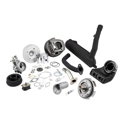 Der Tuning-Dschungel ist groß, das Angebot riesig und die Möglichkeiten schier unbegrenzt. Im Road-Tuning Bereich haben sich im Laufe der Jahre Most-Wanted Kombinationen herauskristallisiert, die alle dieselben Anforderungen erfüllen: Deutliche Leistungssteigerung, die sich in besserem Abzug und höherer Endgeschwindigkeit bemerkbar macht, gute Haltbarkeit, einfache Montage, keine oder geringe Änderungen am Motogehäuse, Zurückrüstung möglich, gutes Preisleistungsverhältnis. In den Tuningkits sind die Lieblings-Kombination des SIP Teams und vieler Kunden zusammengestellt. Sie sind ein sehr gutes Up-Grade der jeweiligen Motoren. Sportlich und dennoch tourentauglich. Sie enthalten alle benötigten Kleinteile und sind daher der ideale Einstieg für jeden, dem Tuning bisher so vertraut war, wie Liebesgedichte in Mandarin. Das ROAD Kit ist das Einstiegskit. Hier wurde auf ein preislich günstiges Gesamtpaket geachtet, das dennoch zu einer spürbar besseren Beschleunigung und höheren Endgeschwindigkeit führt.Das SPORT Kit enthält einen drehzahlfreudigen Zylinder und häufig einen größeren Vergaser. Mehr Dampf und mehr Speed sind die Folge. Die Vergaser sind meist ohne Getrenntschmierung. Wer selber mischt, weiß, was im Brennraum ankommt. Die Bedüsung ist ein Richtwert und ist in Hamburg auf 0 m ü. NN anders als in Balderschwang im Allgäu. Beide Kits sind eine gute Basis für weiteres Tuning. Dies ist dann aber immer mit einem Kurbelwellenwechsel verbunden, was eine Öffnung des Motors nach sich zieht. Ist der Motor schon alt oder hat viele Kilometer hinter sich, empfiehlt sich eine Motorüberholung. Wenn man eh schon am offenen Herzen operiert, sollte das Tuning durch Kurbelwelle und Getriebekomponenten erweitert werden. Fazit: Durch die Tuning-Kits sparen sich Einsteiger Geld und Nerven und profitieren von der jahrelangen Tuning-Erfahrung von SIP.