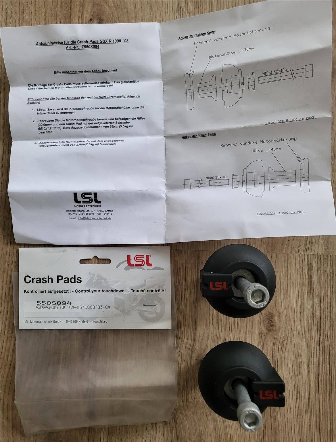 Schwarze Sturzpads/Crashpads von LSL (550S094) zur Montage am Rahmen inkl. Montagekit, damals gekauft für Suzuki GSX-R 600/750/1000 (03 05), OVP, Bedienungsanleitung, gebraucht, aber neuwertig, Versand gegen Aufpreis möglich, 25 €