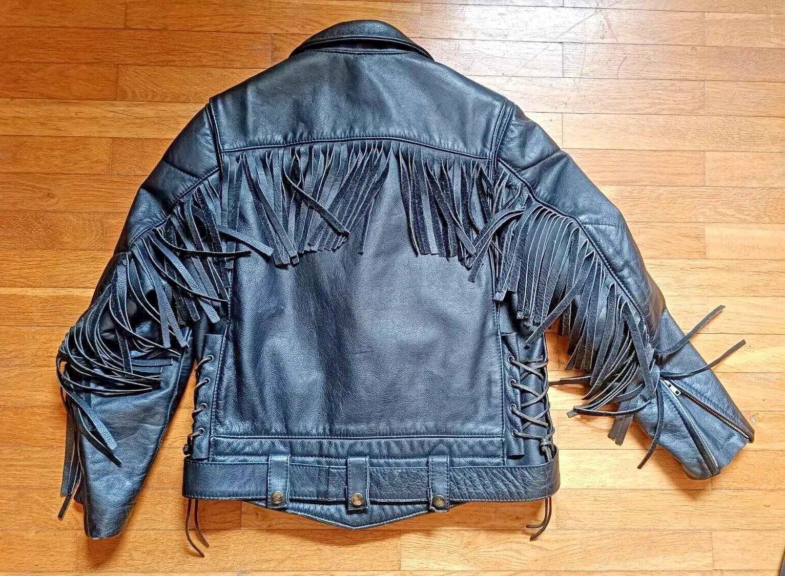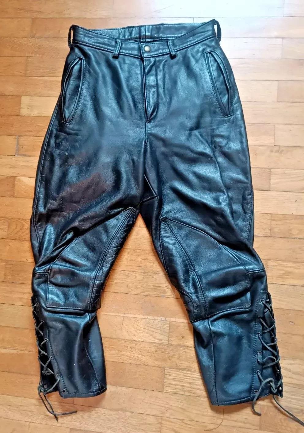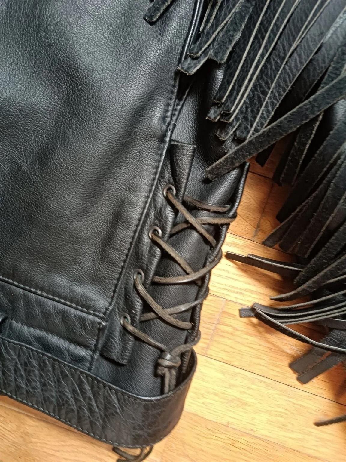 2-teilig.Lederanzug f. zierliche Bikerin - Vintage-Look mit Schnürung u. Fransen