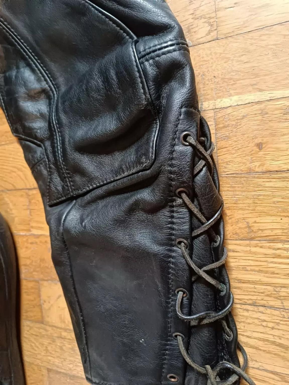 Der Anzug besteht aus 2 Teilen und ist aus schützend dickem, aber weichem Leder.