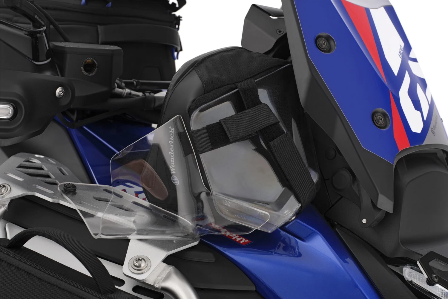 Formschlüssig maßgeschneidert sitzen die Windabweisertaschen sicher und sind unterwegs stets gut zugänglich