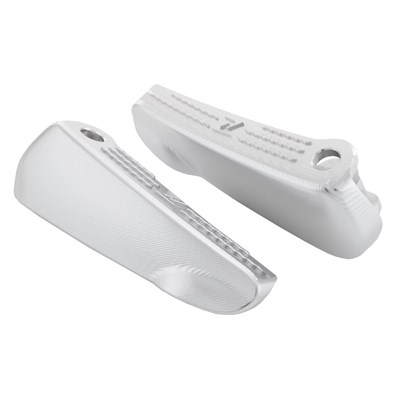 Fußrasten aus hochfestem Aluminium, CNC gefräst, eloxiert, mit ZELIONI Logo. Wird anstatt der originalen Fußraste montiert. Das Klappgelenk bleibt erhalten. Montagehinweis: Fußrasten komplett vom Fahrzeug demontieren. Bolzen, Federn und Sicherungsringe werden vom Original übernommen. Vorderen (großen) Bolzen von unten mit einem Durchschlag ausschlagen. Beim Bolzen direkt an der Fußraste den Sicherungsclip vorsichtig lösen und den Bolzen herausnehmen. In umgekehrter Reihenfolge mit neuer Raste wieder zusammenbauen. Vorher unbedingt auf die Einbauweise der Feder achten.