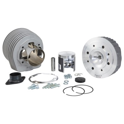 PINASCO ist ein Name im Geschichtsbuch von Tuningfans. Schon 1969 wurde in dem italienischen Motormagazin Motociclismo ein PINASCO Tuningzylinder für die Vespa vorgestellt der Erste auf dem Markt erhältliche Tuningyzlinder überhaupt. Zuverlässigkeit und hochwertige Qualität, das sind die Attribute mit denen PINASCO seit Jahrzehnten punktet und für durchgängige Kundenzufriedenheit sorgt. Die exzellenten Aluminiumzylinder mit ihrer hochwertigen Nicasil Beschichtung, den 6 Überströmern und dem soliden ASSO Kolben stehen für die makellose Fertigungsgüte und den beständig hohen Qualitätsanspruch der Firma PINASCO. Wer mehr will, kann hier schon recht einfach mit einem 24/ 24 Si Vergaser, angepasstem Einlaß und Rennwelle sein Vespa zusätzlich beflügelt. Wer das Potential des Zylinders maximal ausnutzen möchte, sollte jedoch Zylinder und Motorgehäuse modifizieren. Magny Cours / GRANTURISMO 177/190ccm: Die "Magny Cours / GRANTURISMO" Version des PINASCO Rennzylinders liefert satte 177 bzw. 190ccm. Der 190ccm Zylinder muss mit einer Kurbelwelle mit 60mm Hub gefahren werden. Lieferung inkl. Zylinderkopf mit zentrierter Zündkerze.Die Evo Version verfügt zusätzlich über einen Schraubflansch für die Auspuffverbindung. Fazit: Preislich attraktiv und nach wie vor DER Einsteigerzylinder, wenn es um Aluminium und ausgewogene Thermik geht. Ideal als Daily Cruiser oder auch für Tuningzwecke. Aluminium/ 63mm Bohrung/ 6 Überströmer/ 177,68ccm/ 187,04ccm Aluminiumzylinder, Hub 57mm, 6 Überströmer, je 2 Seitenüberströmer, Y- förmiger und zweigeteilter Boostport, Kolben mit zwei Kolbenringen, oberer Ring als L- Ring ausgeführt, original PINASCO Zylinderkopf wird mitgeliefert, inkl. Dichtsatz und Einbauanleitung. Das Motorgehäuse sollte - muss aber nicht - an die größeren Zylinderüberströmer angeglichen werden. Bedüsung und Zündeinstellung sollten überprüft und optimiert werden. SIP- TIPP: W3AC Zündkerze, Hauptdüse und Zündeinstellung anpassen sind Pflicht. Vergaser SI 24/24, italienische/SIP/JL RAPs, leichtes Lüfterrad/SIP Performance Zündung, Renn-/Langhubwellen empfehlenswert. Vollwangen-/Lippenwelle und 28-30er Vergaser sind das nächste Level. SIP community user "axelito":"Exzellenter Tourenzylinder. Für schaltfaule Fahrer der ideale Zylinder, drehmomentstark & unaufällig und unverwüstlich." SIP Kunde Michael OD., Ireland:"Excellent!!!, MY 125 feels like a different bike!" Salvatore Mennonna, SIPERIA, Landsberg, 10/2017: Beim SIP Trip 2017 nach Barcelona war ich immer mit vorne dabei. Mit SIP Road, 24er SI und Dank einer 23er Übersetzung war ich den 210er Touren Malossis ebenbürtig. Super Durchzug, 120km/h in der Spitze möglich, 1600 km ohne Probleme. Und das nur gesteckt und mit originaler Kurbelwelle. Top.