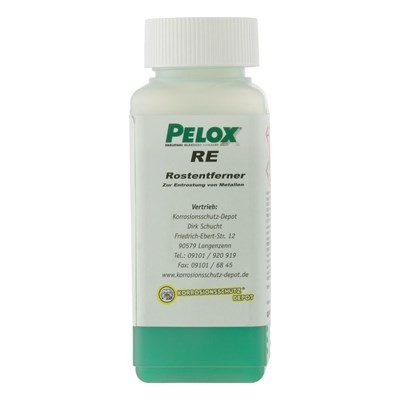 Der PELOX RE Rostentferner basiert auf Phosphorsäure und löst Rost vollständig auf. Er hinterlässt eine rückstandsfreie, saubere Oberfläche. Das Blech ist nach der PELOX-Behandlung absolut rostfrei wie neues Metall. Das ist der große Unterschied zu Rostkonservierern und Rostumwandlern, die stets eine Beschichtung auf dem Metall erzeugen.