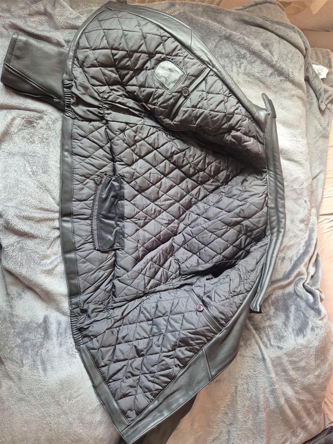 Die Jacke besteht aus echtem Leder, ist weich, robust und hat dezent gepolsterte Schulter- und Armbereiche.