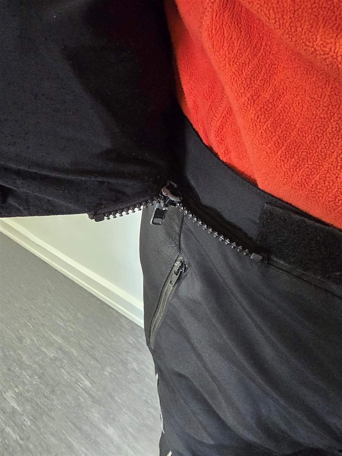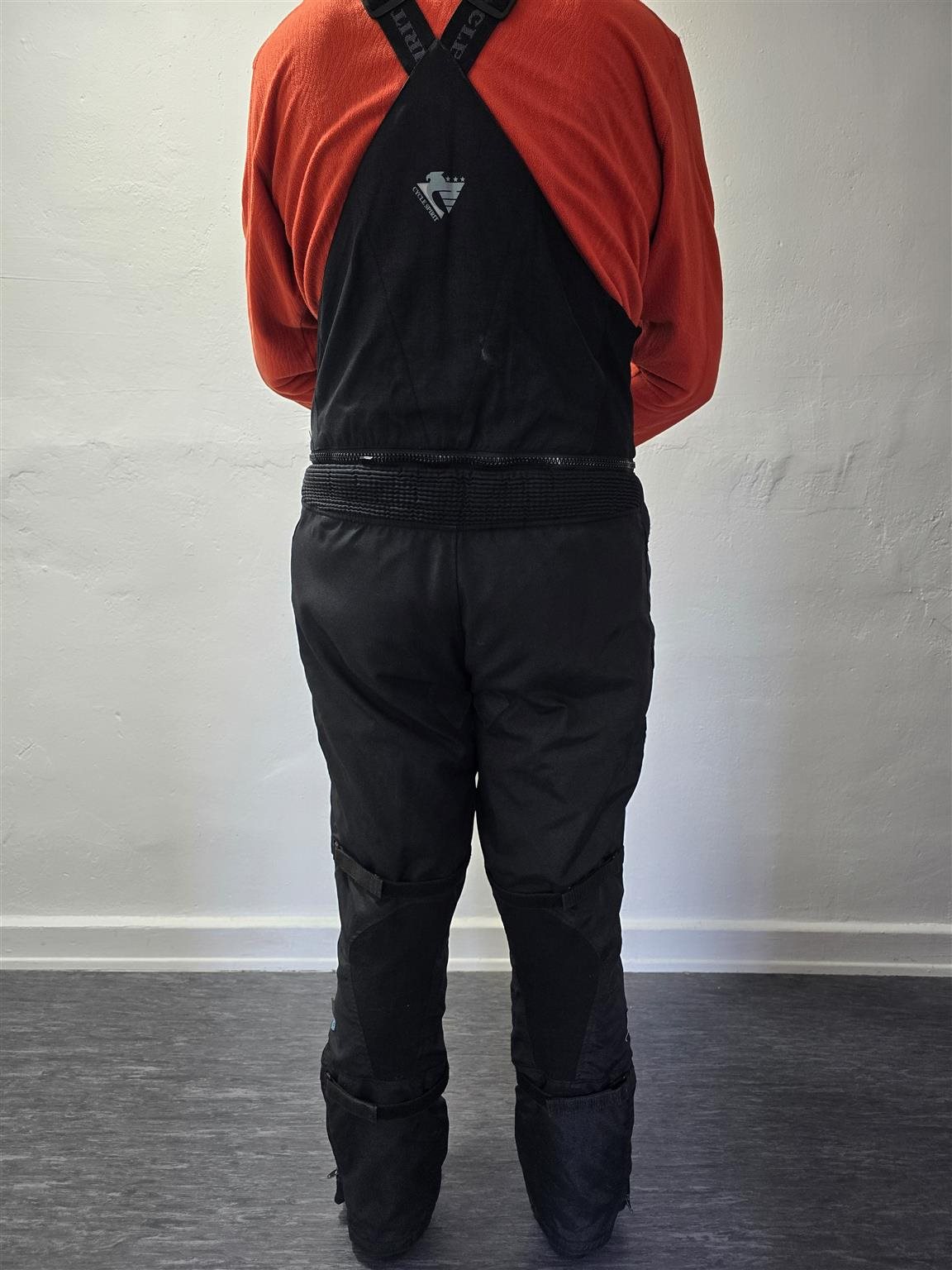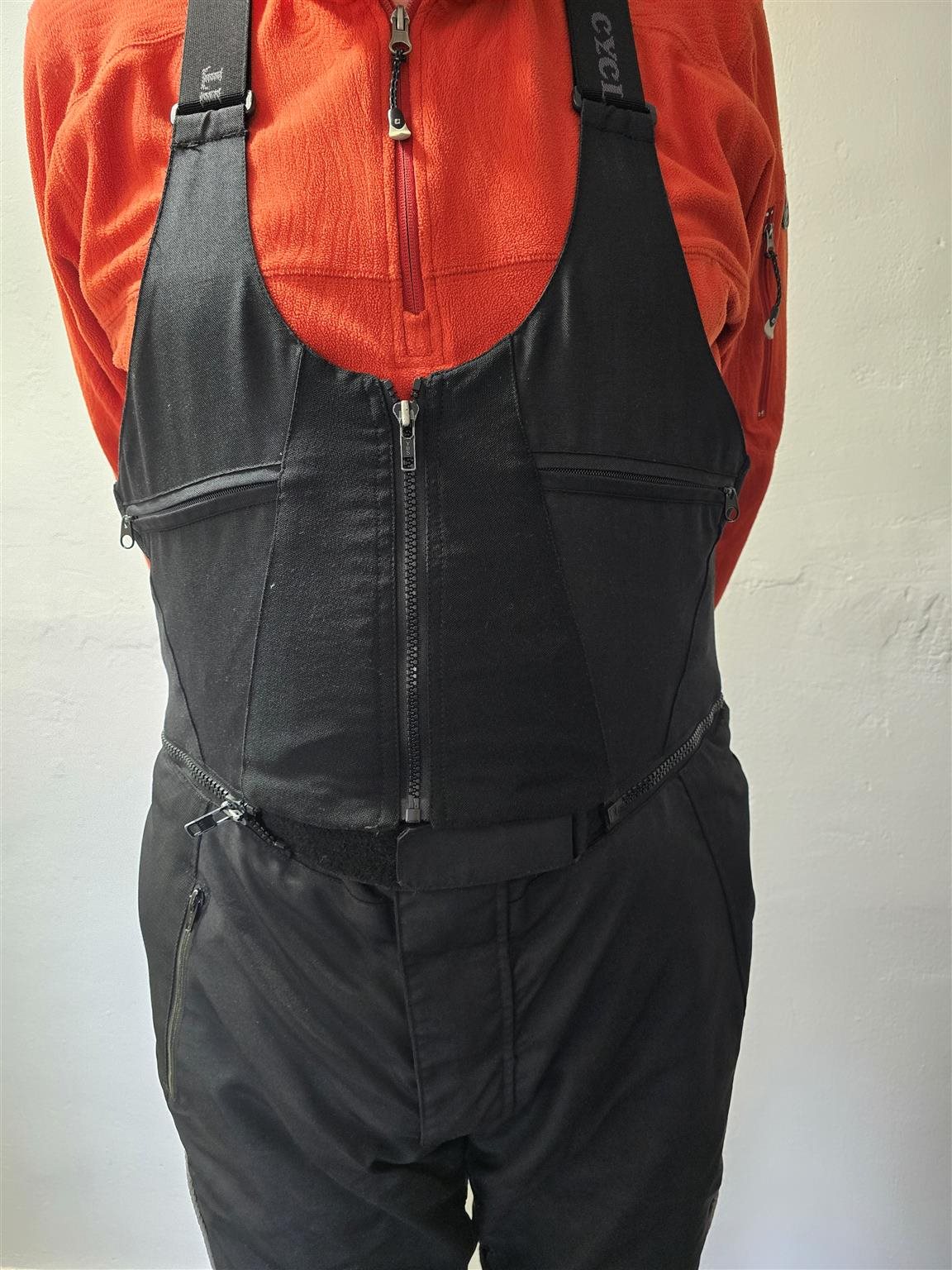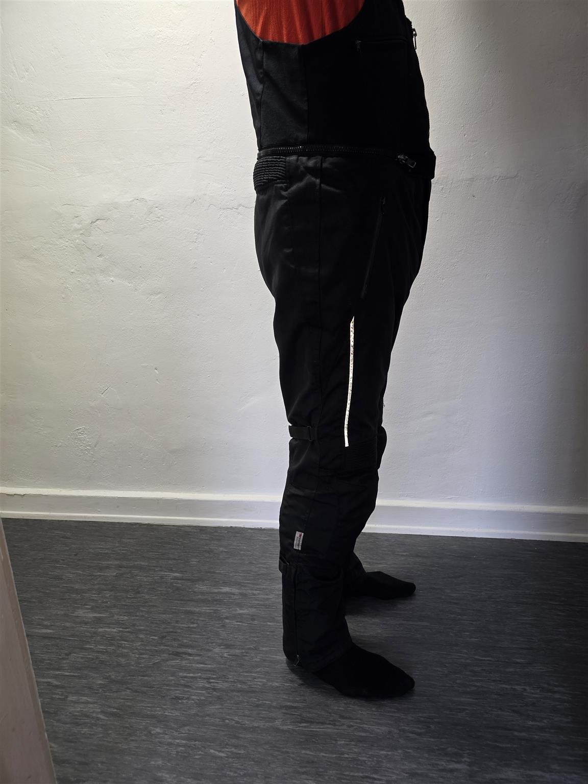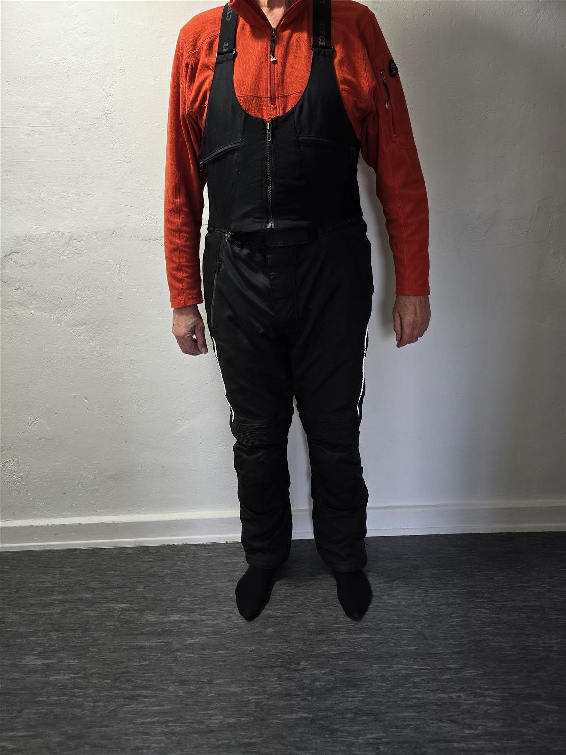 Membran, Knie- und Hüftprotektoren. Latz mittels Reißverschluss abnehmbar. Herausnehmbares Winterfutter.