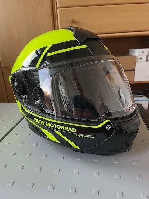 Verkaufe einen neuen ungetragenen BMW Helm System 7 EVO Carbon ECE Spec. mit Sonnenblende, Artikel Nr.: 76317105238, Größe 60/61, Farbe gelb, BMW Motorrad Ride Kollektion 2022 (Neupreis: 675,00€)