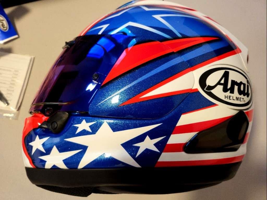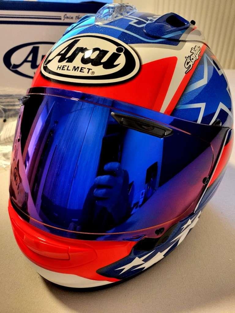 Der Arai RX-7V EVO Hayden WSBK ist die Replik des Kentucky Kid, der 2006 vom MotoGP in die WSBK-Klasse wechselte. Diese Helmreplik von Nicky Hayden ist ein echtes Sammlerstück.