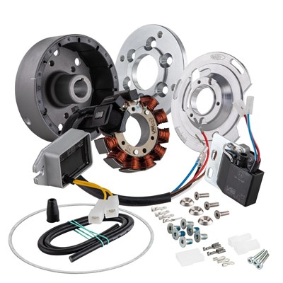 Lieferumfang der Zündung SIP PERFORMANCE by VAPE AC PolradZünd-/LichtspulenZündgrundplatteSpannungsreglerElektronikzentraleSpacer für Motorgehäuse/LüfterkanalAdapter für LüfterkranzZündkabelBefestigungsmaterialSteckerMontageanleitung