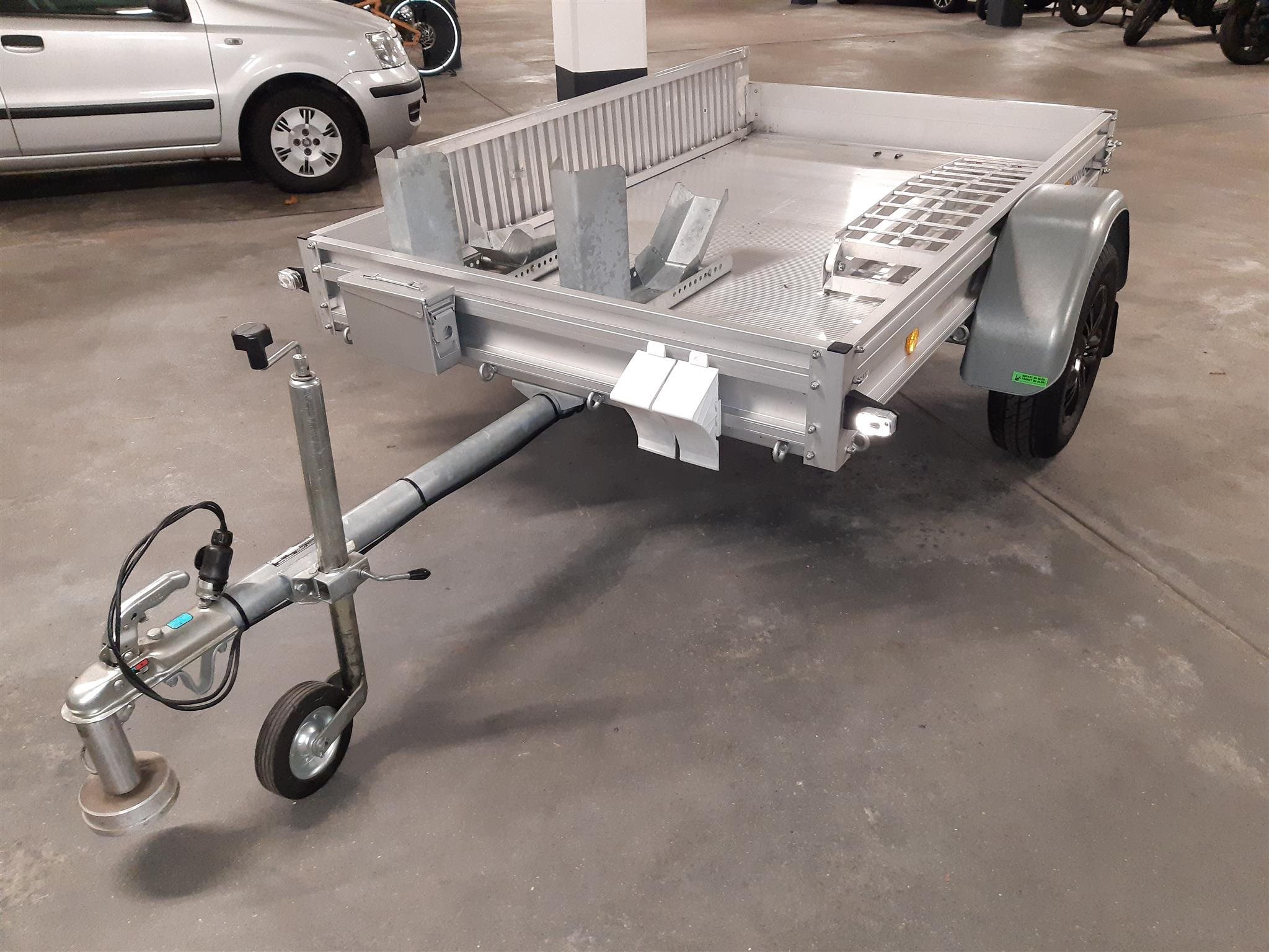 Anhänger Kröger Alutrail 75, Garagenfahrzeug, kaum gelaufen, Bj. 04.18, Zul. 100 KM/H, aus Alu und Nirosta, 2 St. Wippen / 2 St. Alurampen, aushängbare Heckklappe, Werkzeugkasten, Gurte, Preis 850,- Euro. Kontakt 040 298 63 81