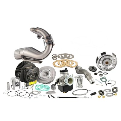 Der Tuning-Dschungel ist groß, das Angebot riesig und die Möglichkeiten schier unbegrenzt. Im Road-Tuning Bereich haben sich im Laufe der Jahre Most-Wanted Kombinationen herauskristallisiert, die alle dieselben Anforderungen erfüllen: Deutliche Leistungssteigerung, die sich in besserem Abzug und höherer Endgeschwindigkeit bemerkbar macht, gute Haltbarkeit, einfache Montage, keine oder geringe Änderungen am Motogehäuse, Zurückrüstung möglich, gutes Preisleistungsverhältnis. In den Tuningkits sind die Lieblings-Kombination des SIP Teams und vieler Kunden zusammengestellt. Sie sind ein sehr gutes Up-Grade der jeweiligen Motoren. Sportlich und dennoch tourentauglich. Sie enthalten alle benötigten Kleinteile und sind daher der ideale Einstieg für jeden, dem Tuning bisher so vertraut war, wie Liebesgedichte in Mandarin. Das ROAD Kit ist das Einstiegskit. Hier wurde auf ein preislich günstiges Gesamtpaket geachtet, das dennoch zu einer spürbar besseren Beschleunigung und höheren Endgeschwindigkeit führt.Das SPORT Kit enthält einen drehzahlfreudigen Zylinder und häufig einen größeren Vergaser. Mehr Dampf und mehr Speed sind die Folge. Die Vergaser sind meist ohne Getrenntschmierung. Wer selber mischt, weiß, was im Brennraum ankommt. Die Bedüsung ist ein Richtwert und ist in Hamburg auf 0 m ü. NN anders als in Balderschwang im Allgäu. Beide Kits sind eine gute Basis für weiteres Tuning. Dies ist dann aber immer mit einem Kurbelwellenwechsel verbunden, was eine Öffnung des Motors nach sich zieht. Ist der Motor schon alt oder hat viele Kilometer hinter sich, empfiehlt sich eine Motorüberholung. Wenn man eh schon am offenen Herzen operiert, sollte das Tuning durch Kurbelwelle und Getriebekomponenten erweitert werden. Fazit: Durch die Tuning-Kits sparen sich Einsteiger Geld und Nerven und profitieren von der jahrelangen Tuning-Erfahrung von SIP.